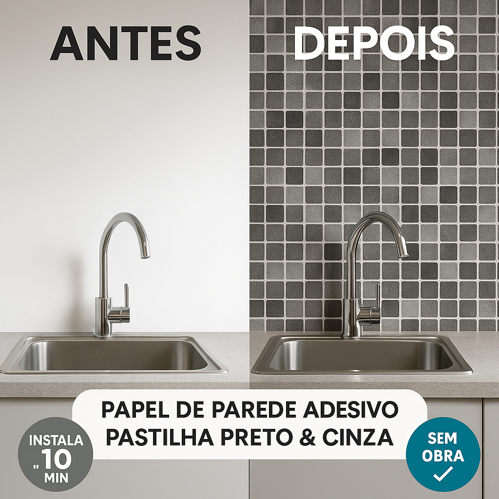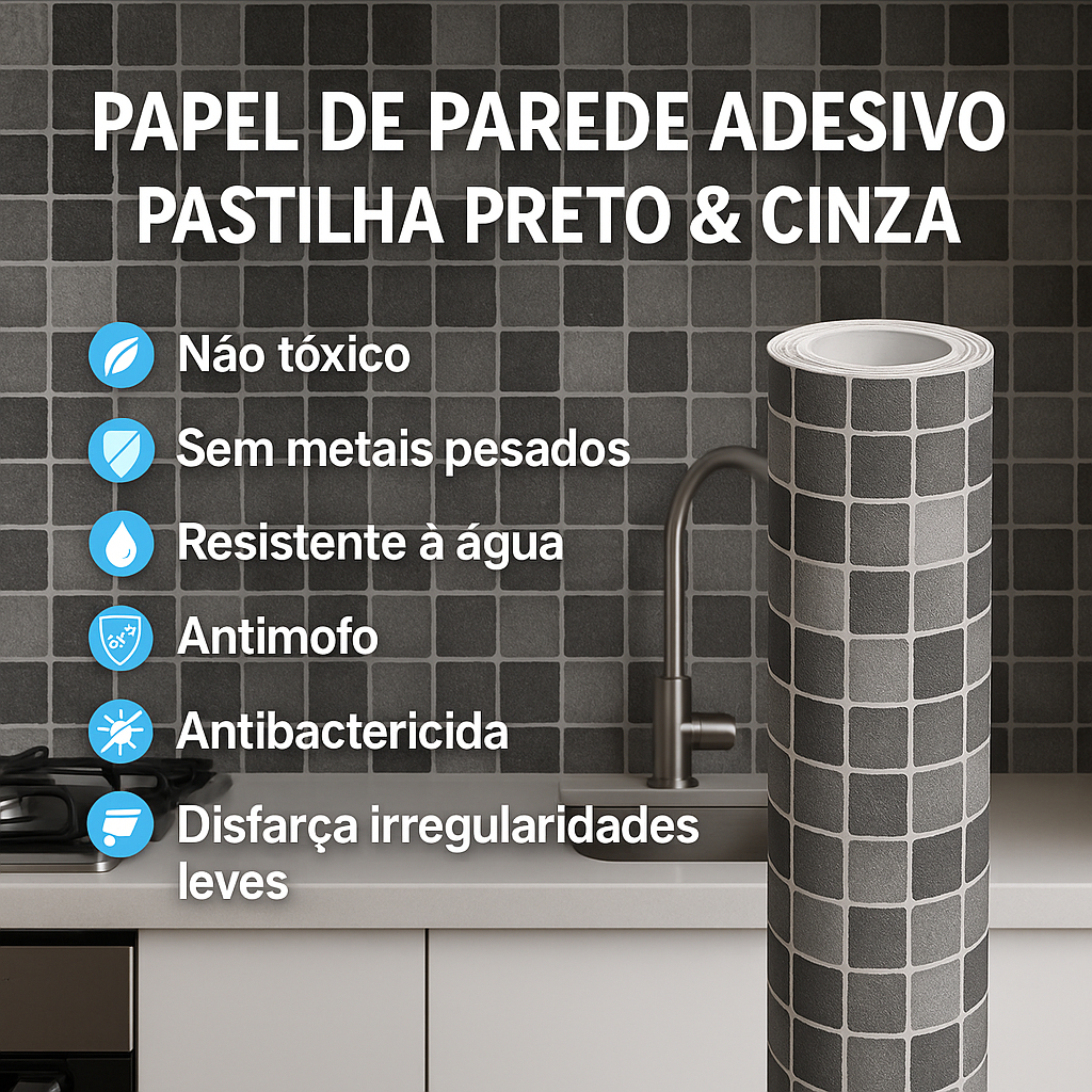 Papel de Parede Adesivo Pastilha 5/10/15/20 Cinza Lavável Resistente a Calor Impermeável Auto colant