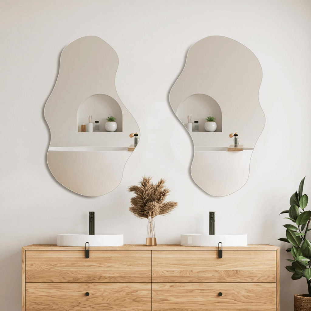 Espelho Organico Moderno 70x50cm Polido Com Suporte de Parede E Dupla Face Quarto Sala Banheiro