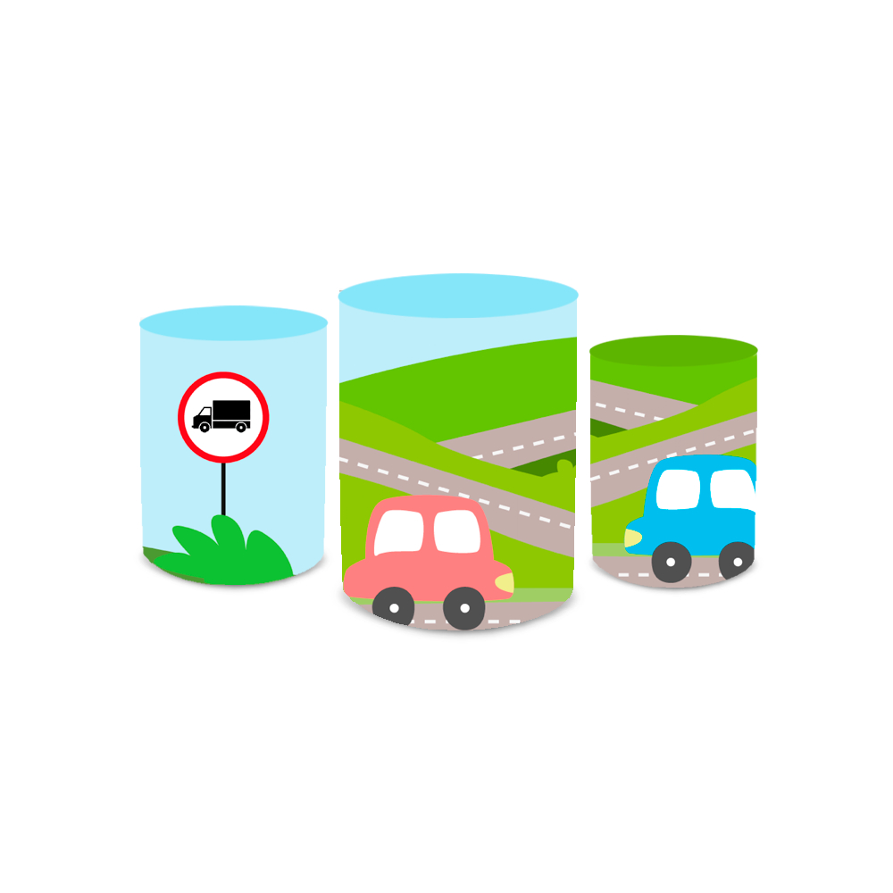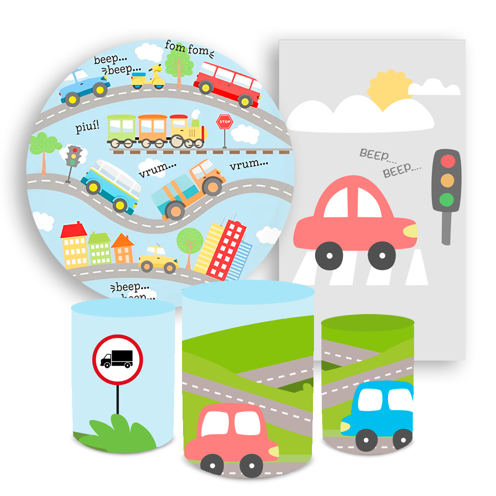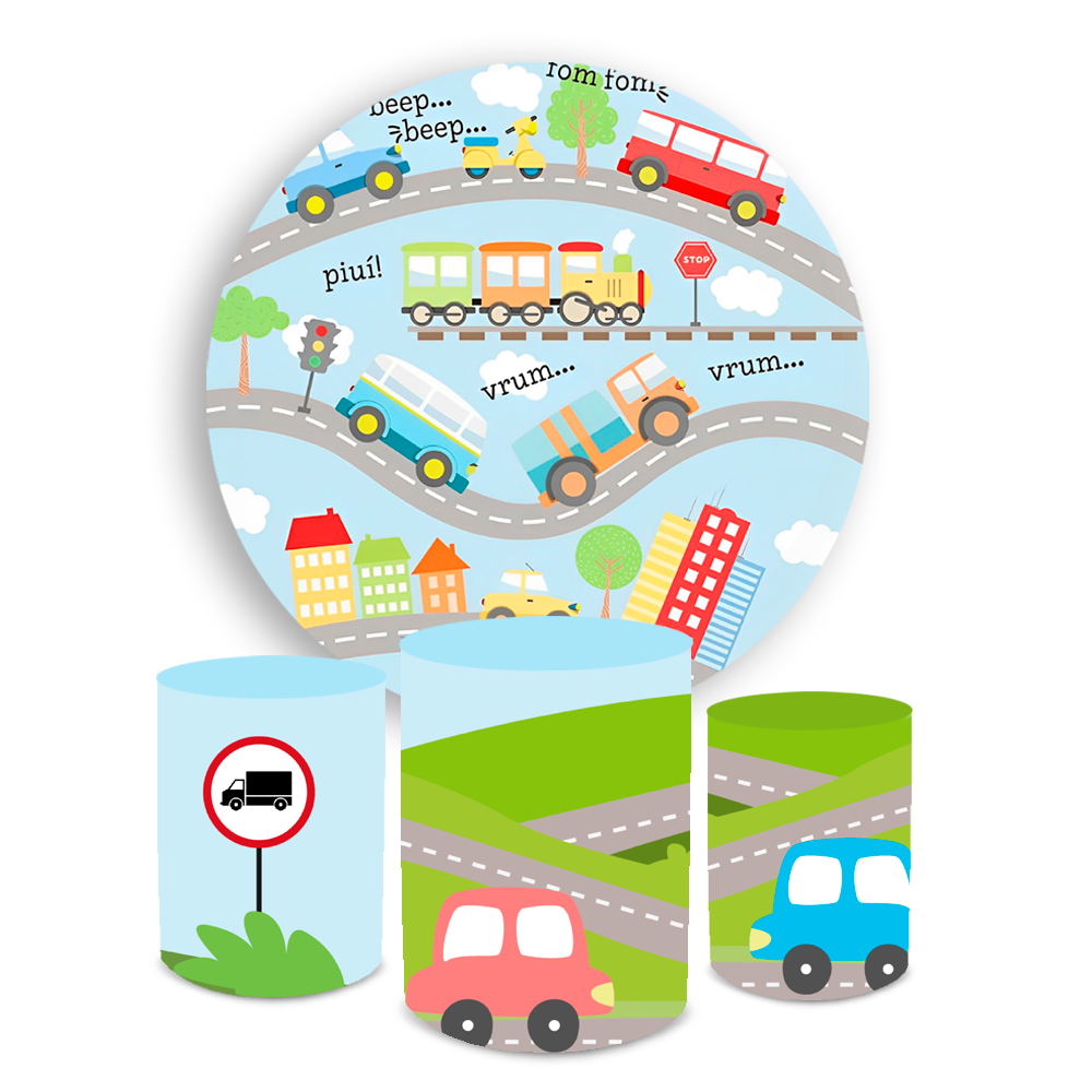 Kit Painel Redondo + Capa Cilindro Decoração Festa Infantil Transito