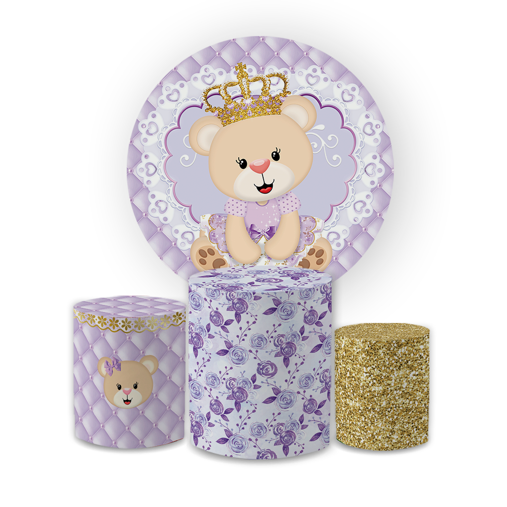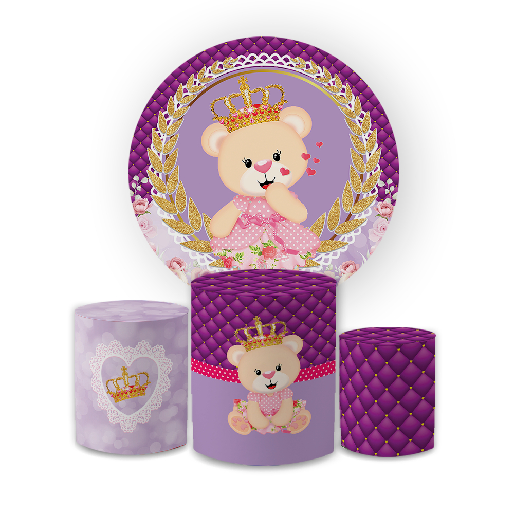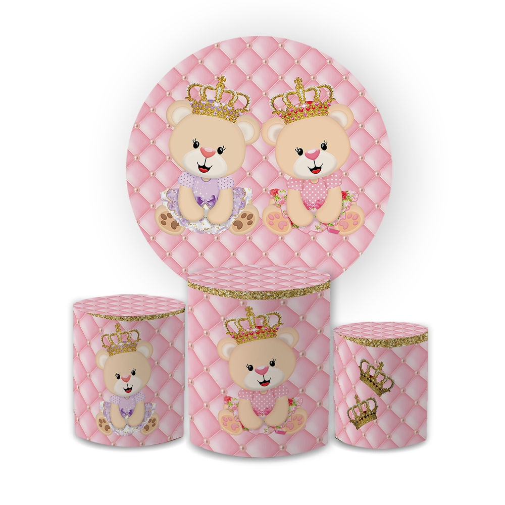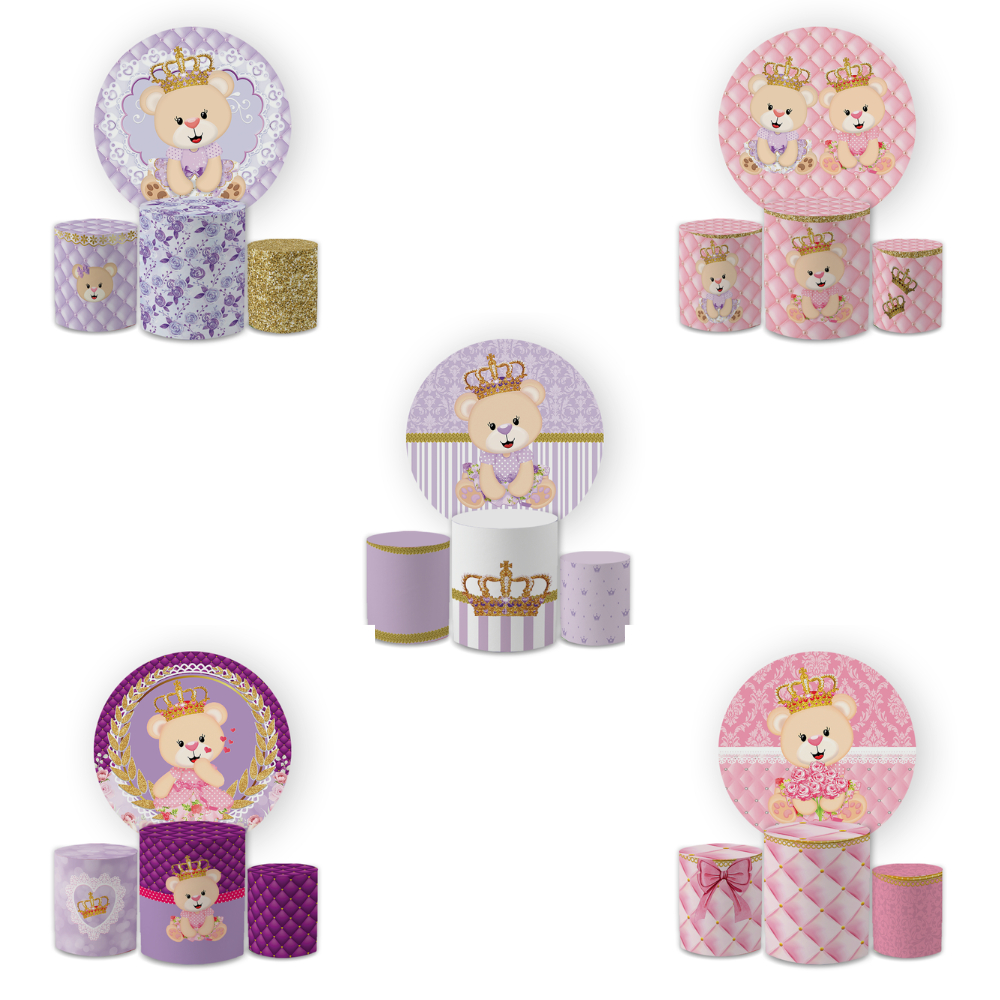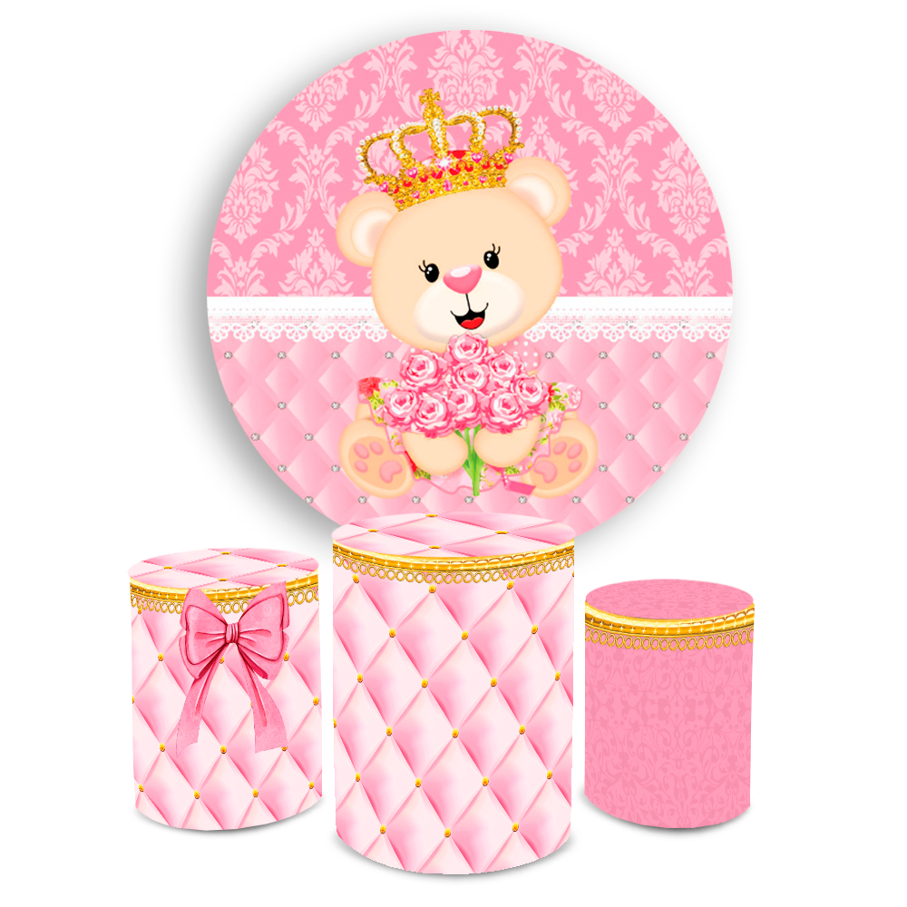 Kit Painel + Trio Capa Cilindro c/ Elástico Ursinha Realeza Rosa