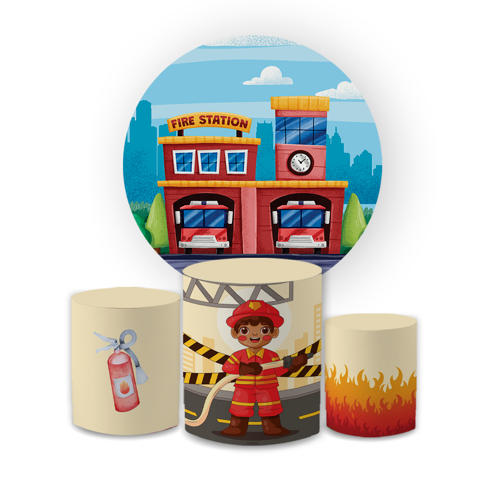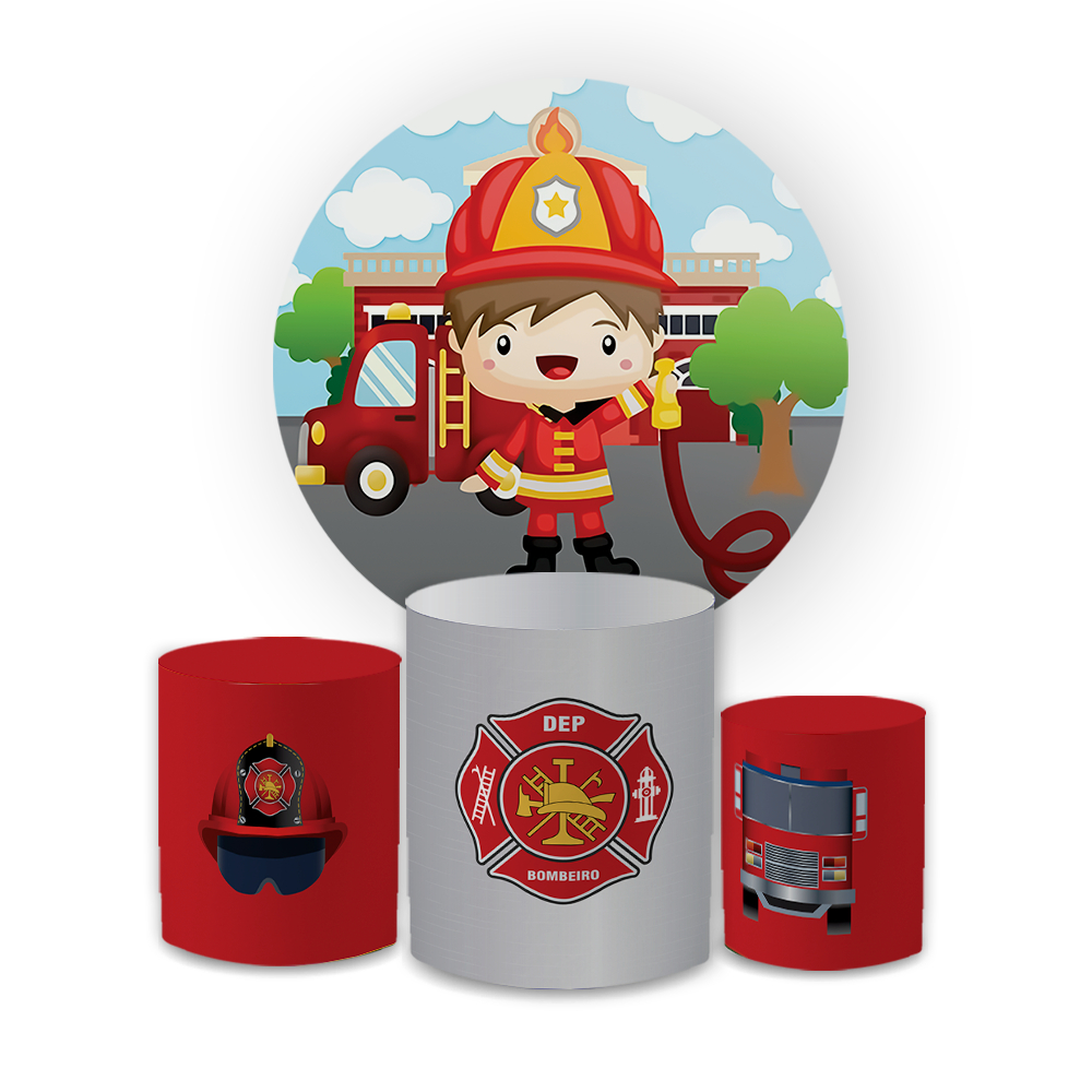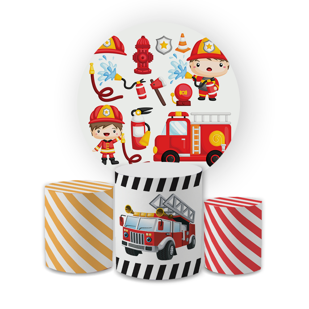 Kit Capas Festivas Para Painel e Cilindros Bombeiro Aniversario Decoração Lançamento
