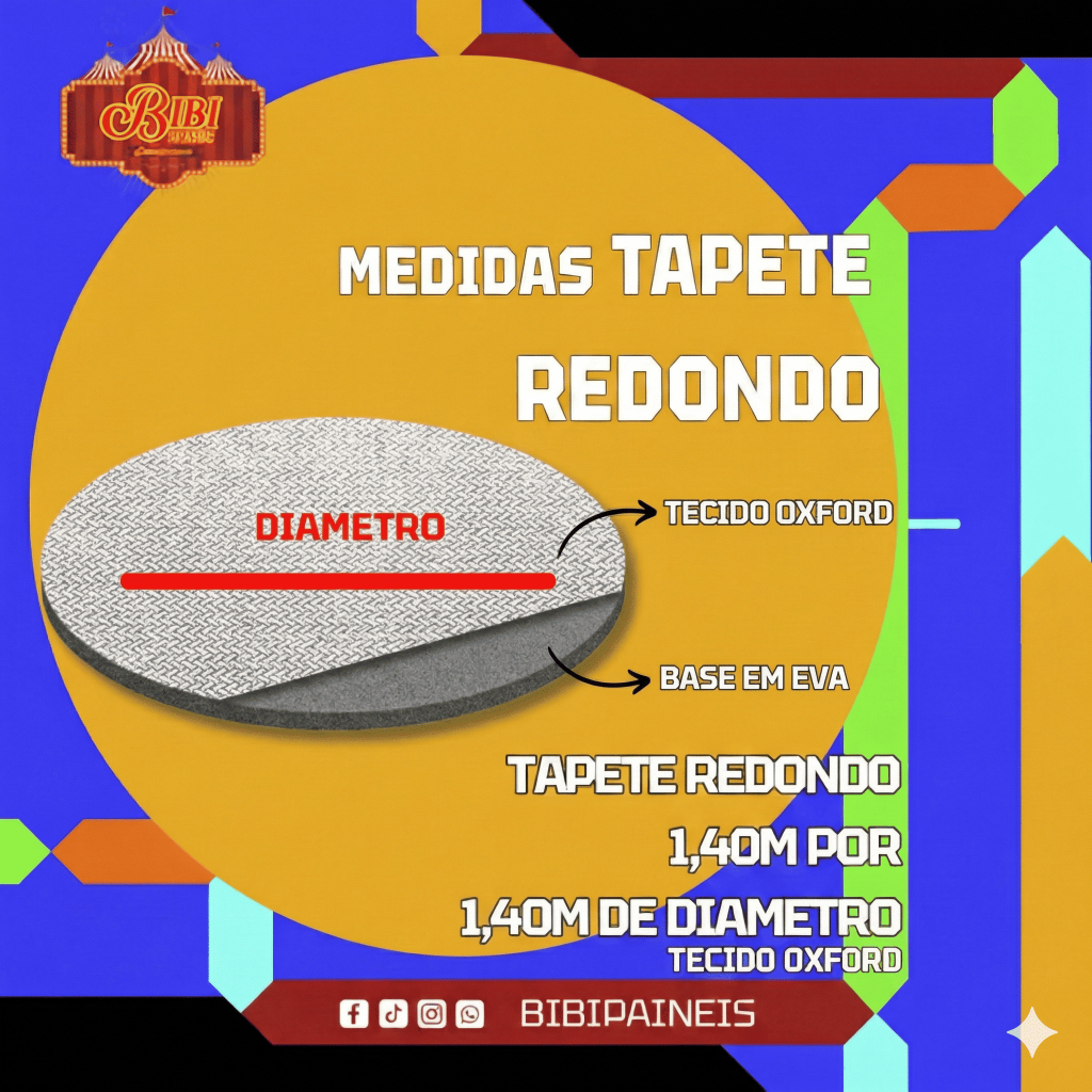 Tapete Decorativo 1,40 x 1,40 Antiderrapante Festa Infantil Vários Temas Sublimado Bibi Painéis
