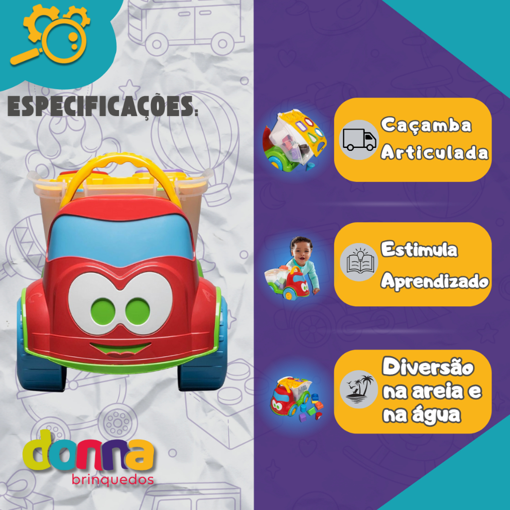 Caminhão De Brinquedo Didático Sabidinho Caçamba Com Peças De Encaixar Pedagógico Educativo Menino