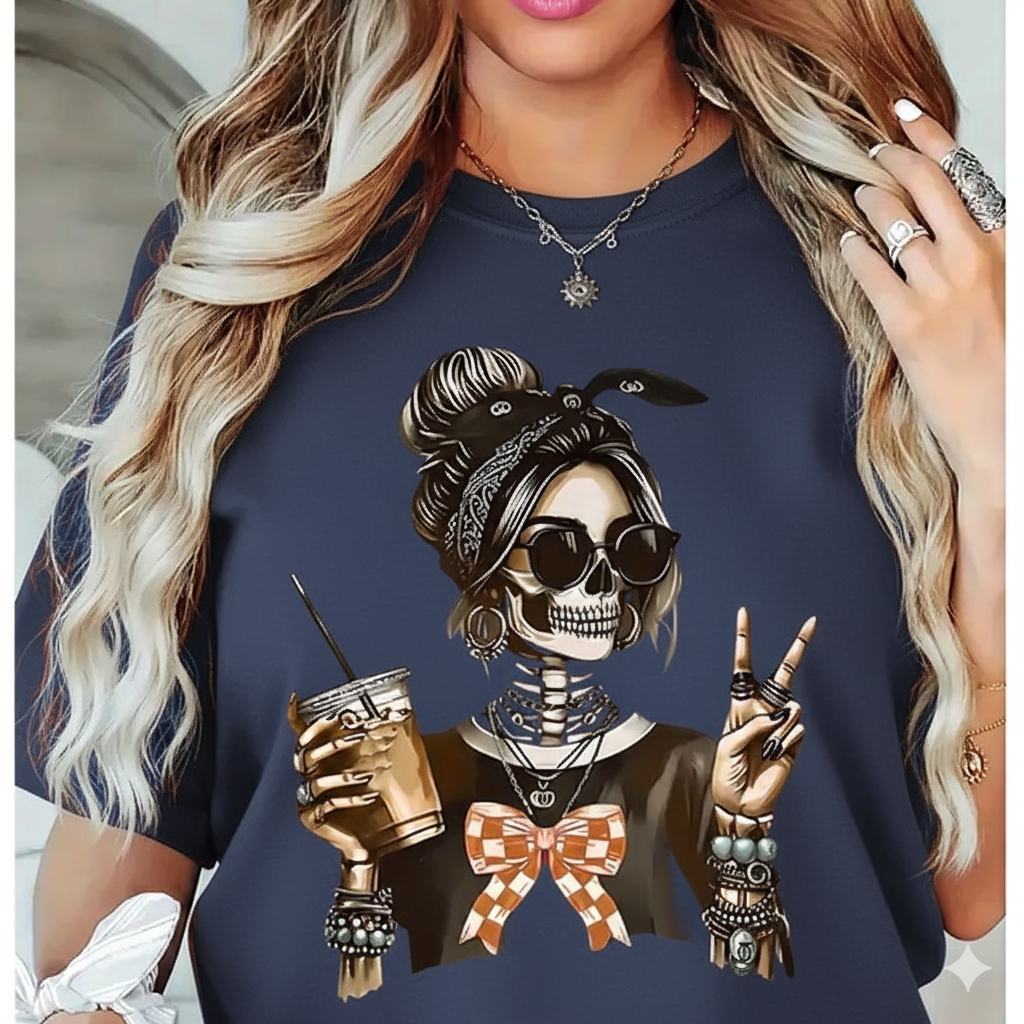 Camiseta feminina caveira Estilosa - Gótica, Rock,descolada, esqueleto divertida lancamento 100%algodao envio imediato