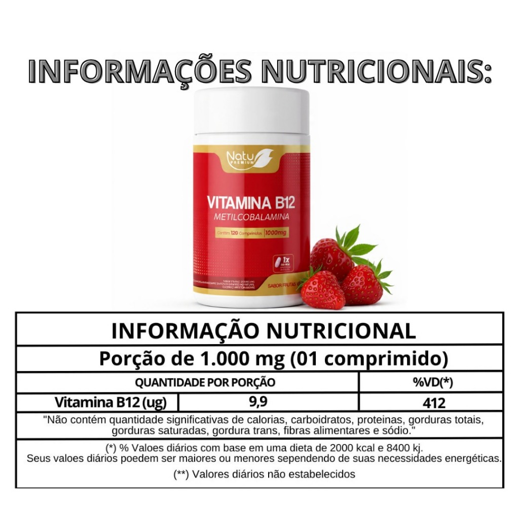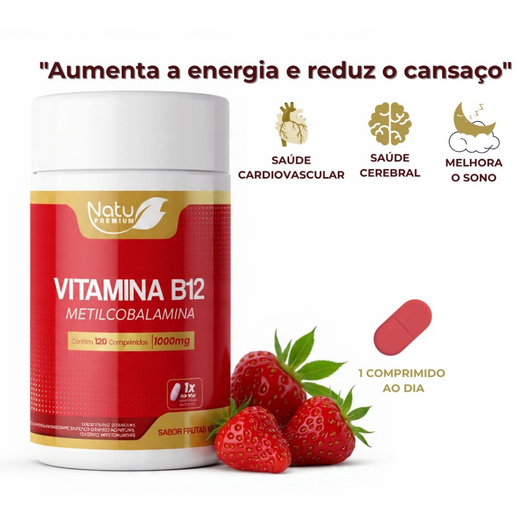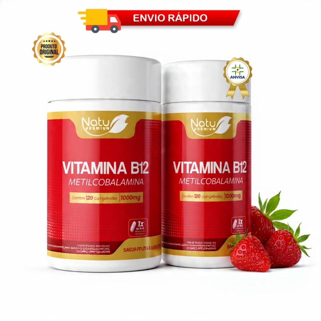 Kit Vitamina B12 1.000mcg (Metilcobalamina)120 pastilhas sublingual - Frutas Vermelhas NatuPremium