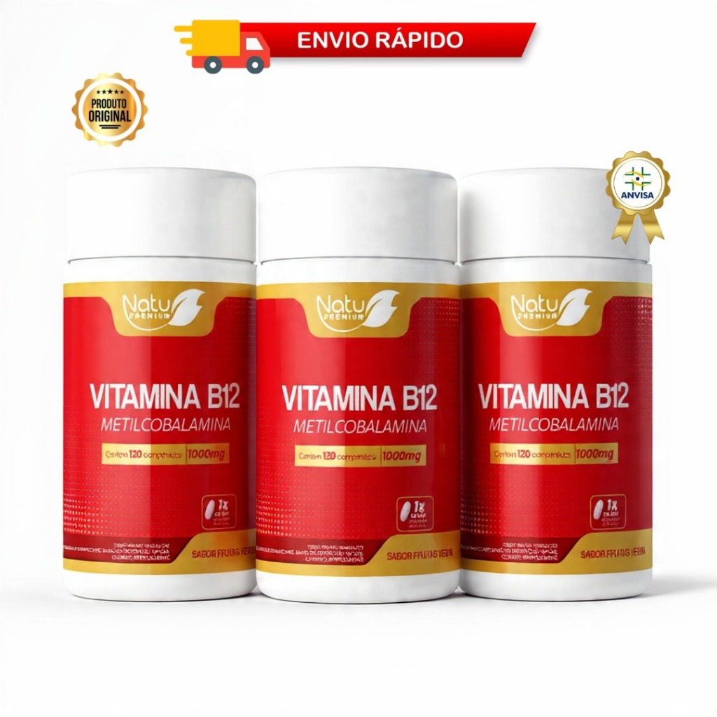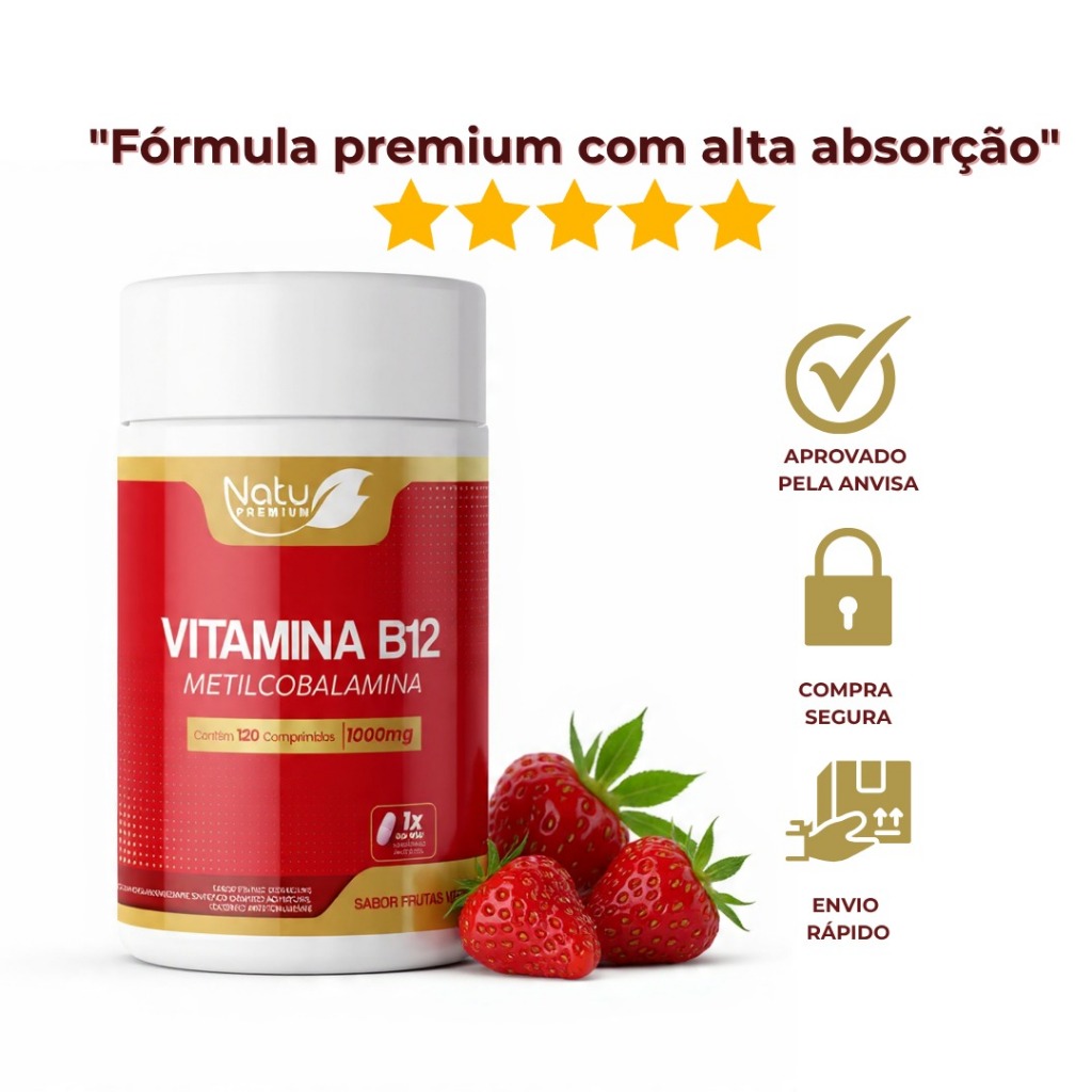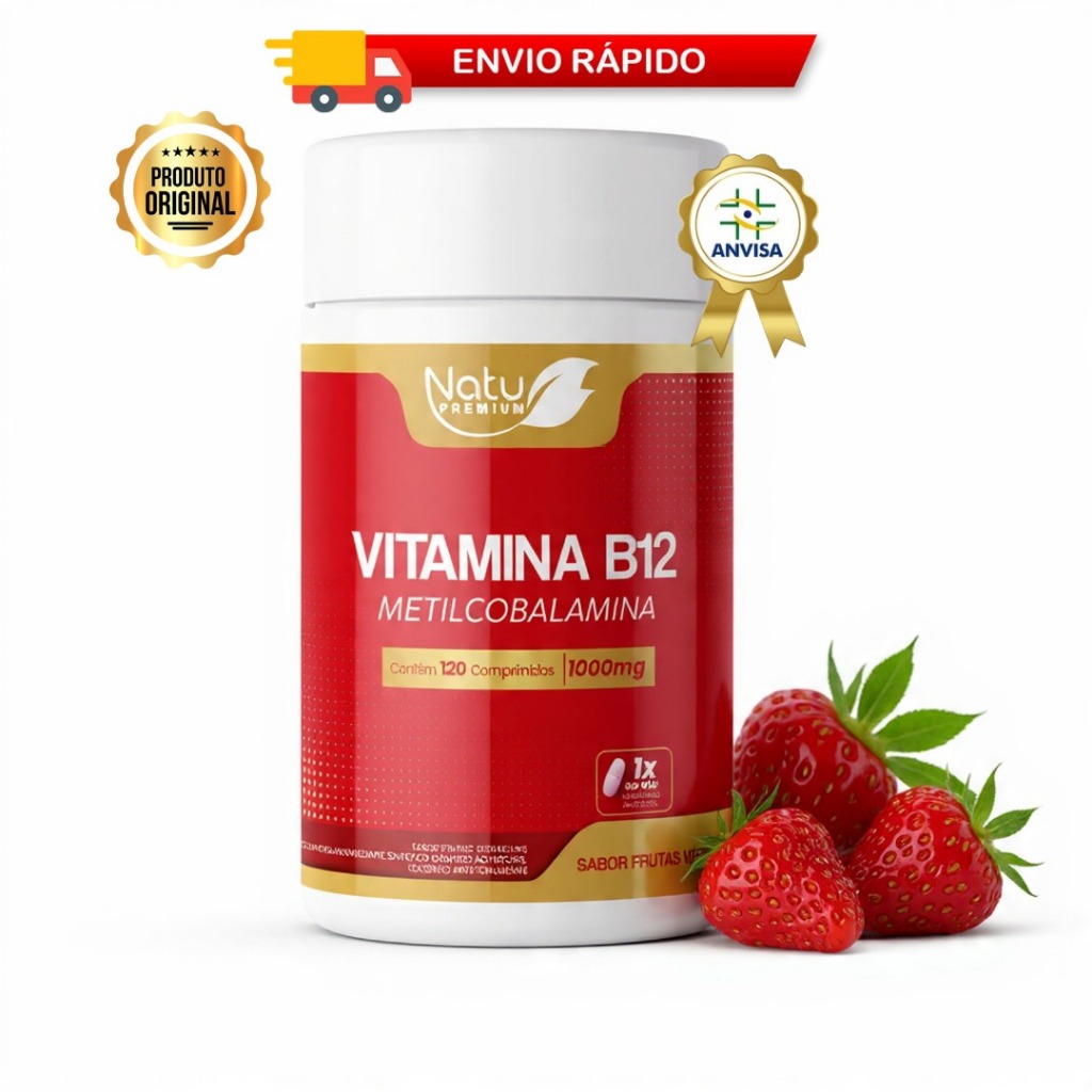 Kit Vitamina B12 1.000mcg (Metilcobalamina)120 pastilhas sublingual - Frutas Vermelhas NatuPremium