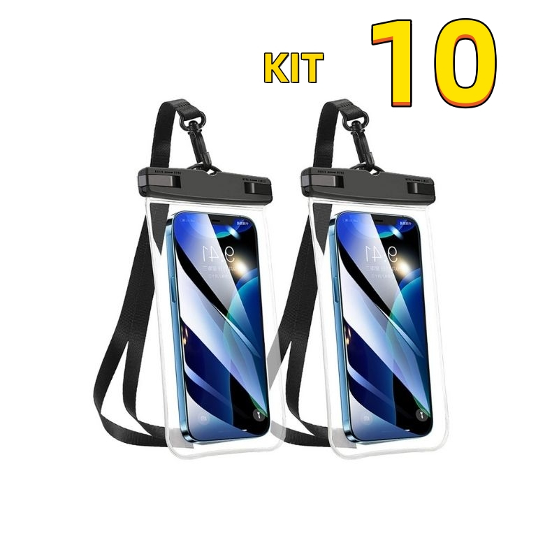 Kit 10 Capa Celular A Prova D'Água Transparente Universal