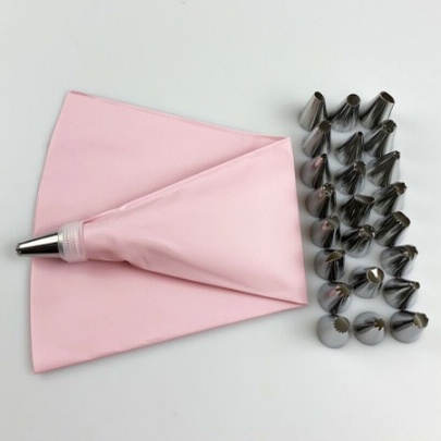 Confeiteiro 24 Pcs+ 3 Peças Raspador Bicos Inox Para Confeitar e Decorar Bolo e Cupcake