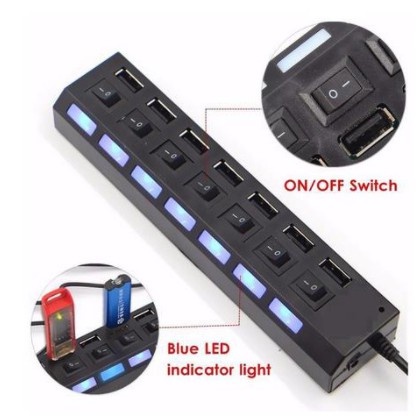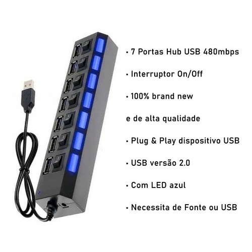 Hub Usb 7 portas 3.0 Hd Extensao Pen Drive Alta Velocidade Com LED Chave seletora