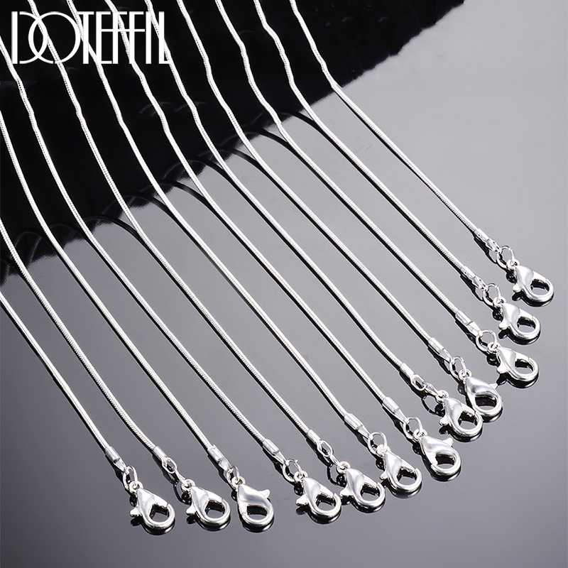 DOTEFFIL 925 Prata Esterlina 10pcs/Lot 16/18/20/22/24/26/28/30 Polegadas Colar De Corrente De Cobra De 1,2mm Para Mulher Homem Moda Jóias