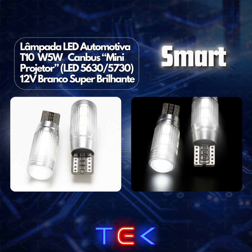 Kit 2 UNI e 10 UNI Lampada Automotivo Pingo T10 Cambus Mini Projetor 12V