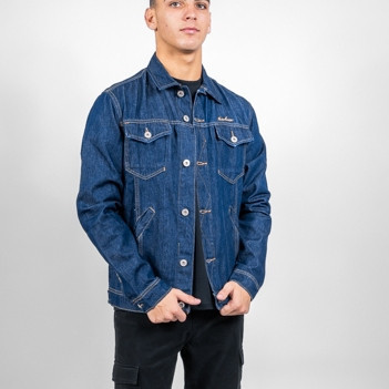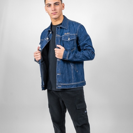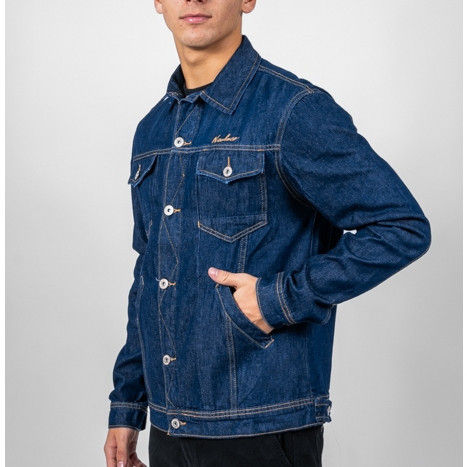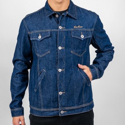 Jaqueta Jeans Escuro Com Botão Ocre Masculino Nicoboco
