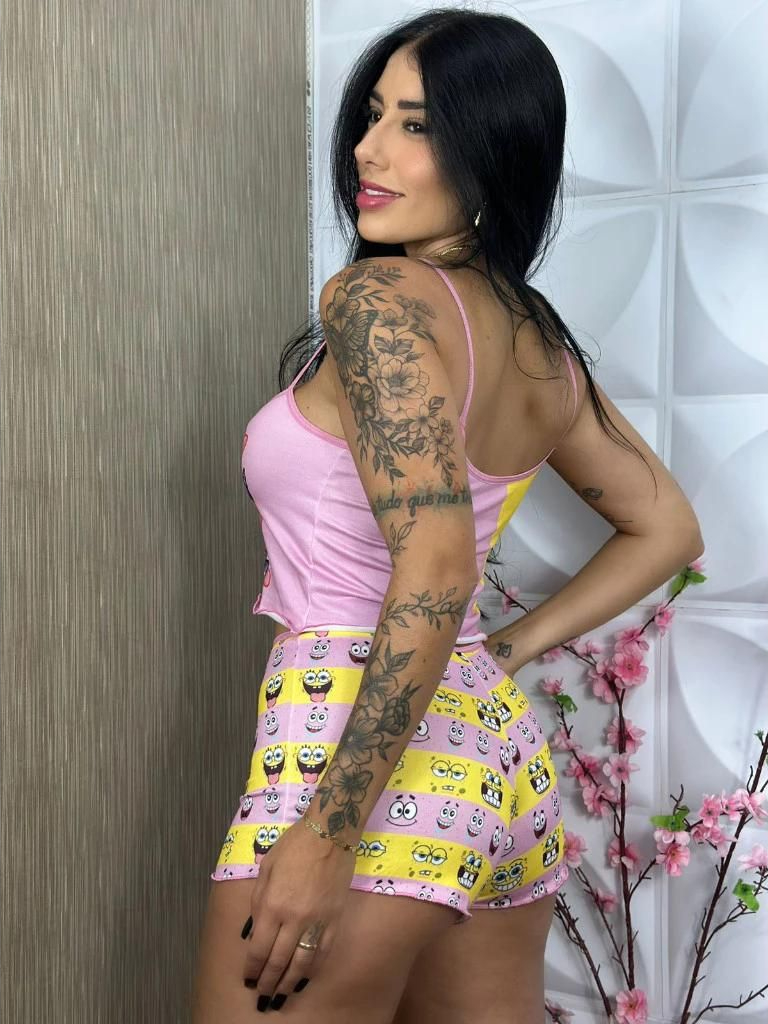 Kit 5 Pijamas Baby Doll Sortidos SUEDE Conjunto Feminino Personagem Cropped Ondinha Short Doll de Dormir