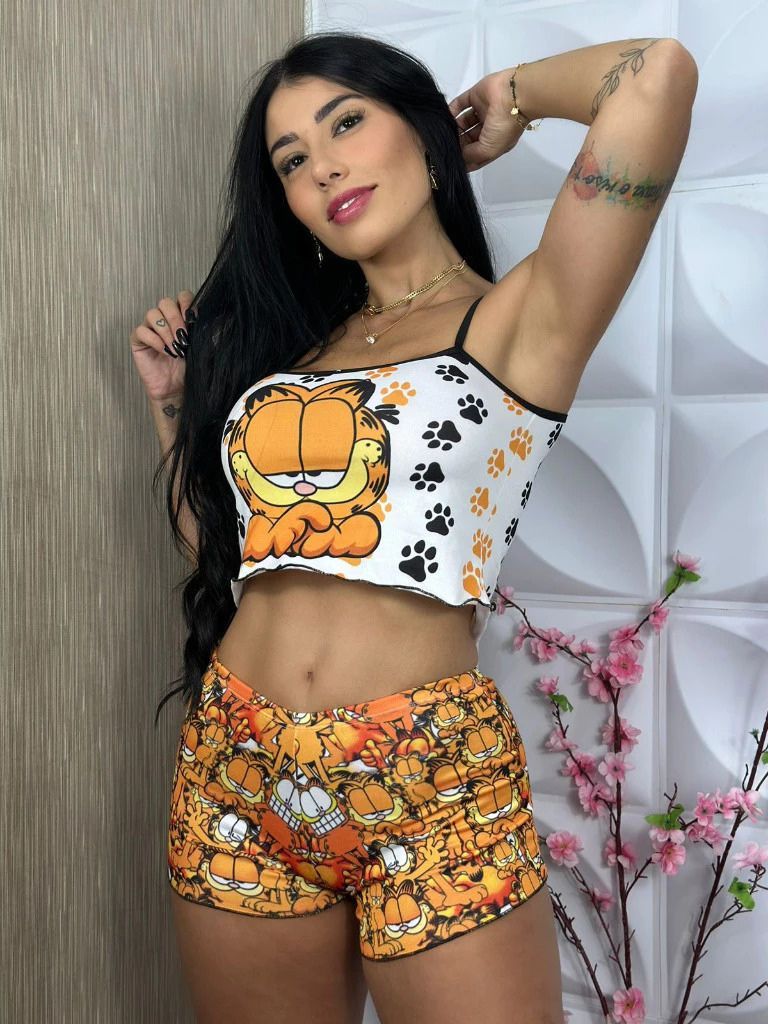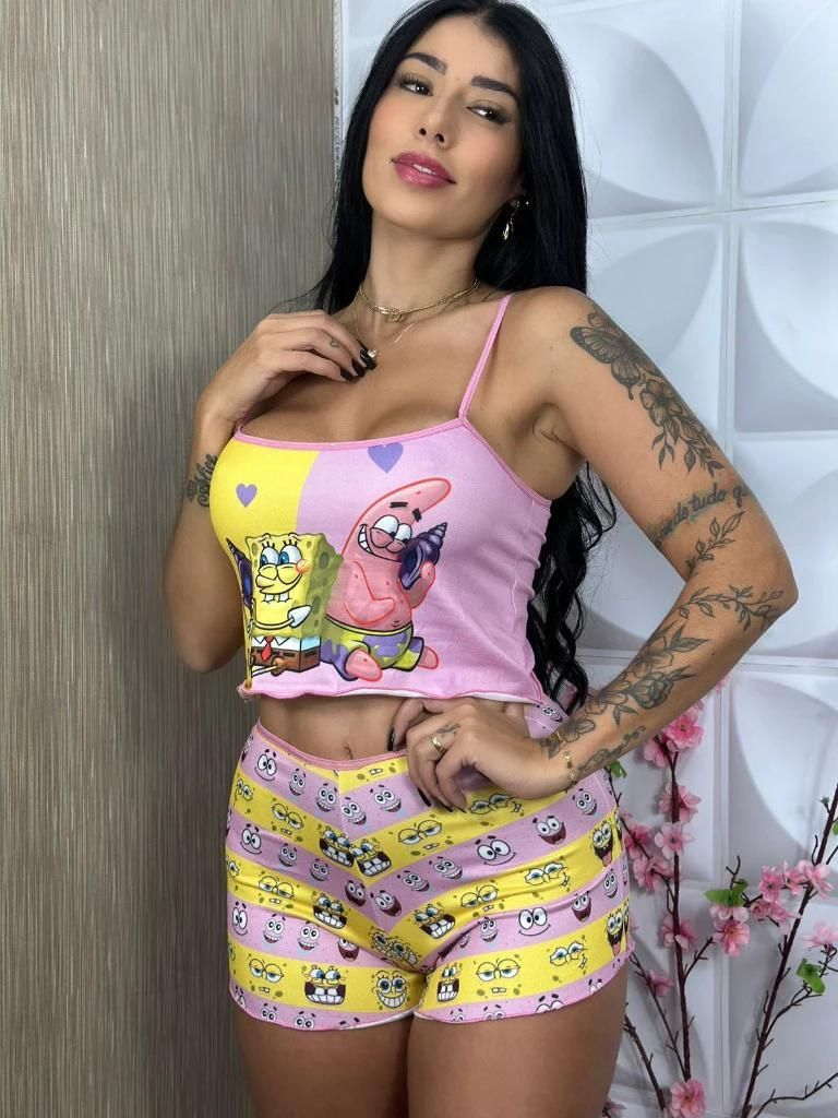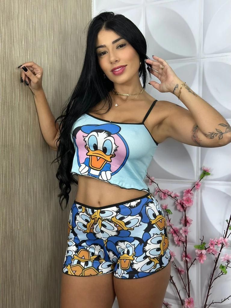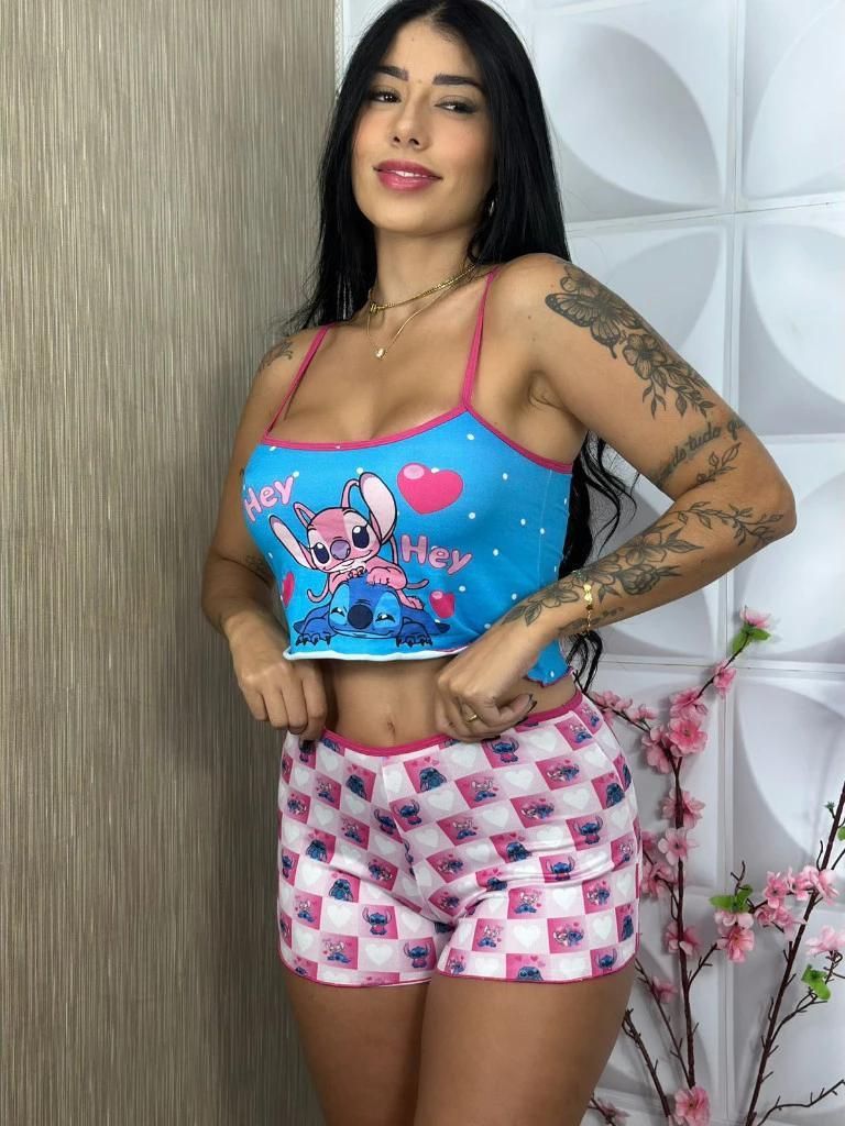 Kit 10 Pijamas Baby Doll Sortidos SUEDE Conjunto Feminino Personagem Cropped Ondinha Short Doll de Dormir
