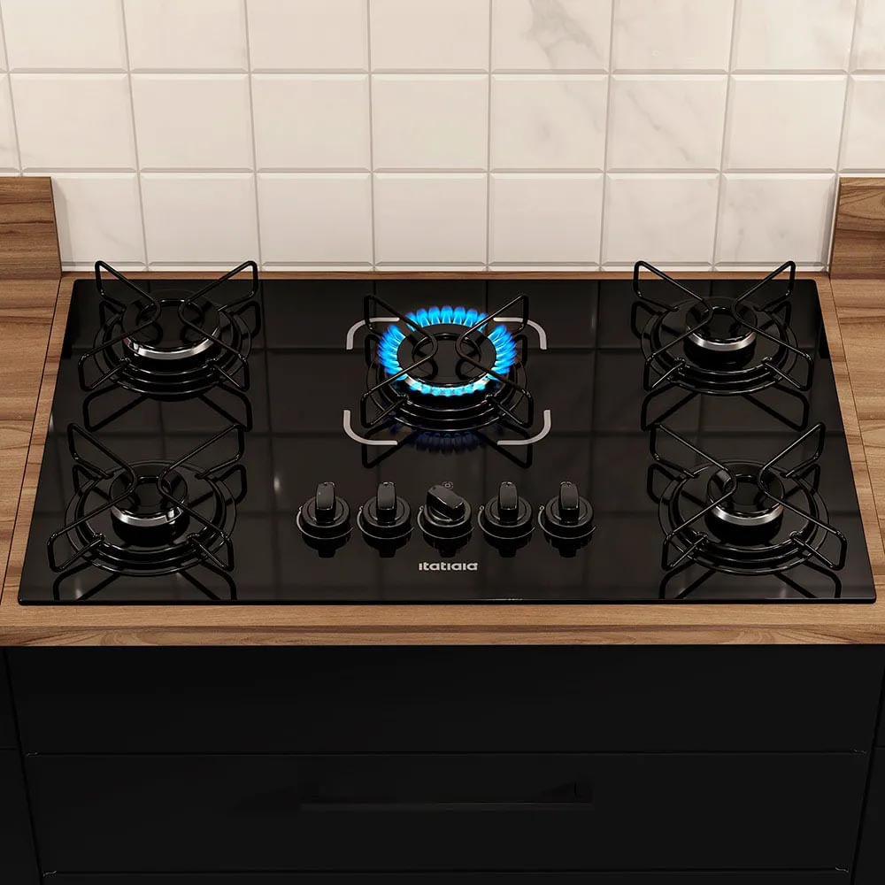 Cooktop 5 Bocas Essencial Itatiaia Mesa De Vidro à Gás Bivolt Preto