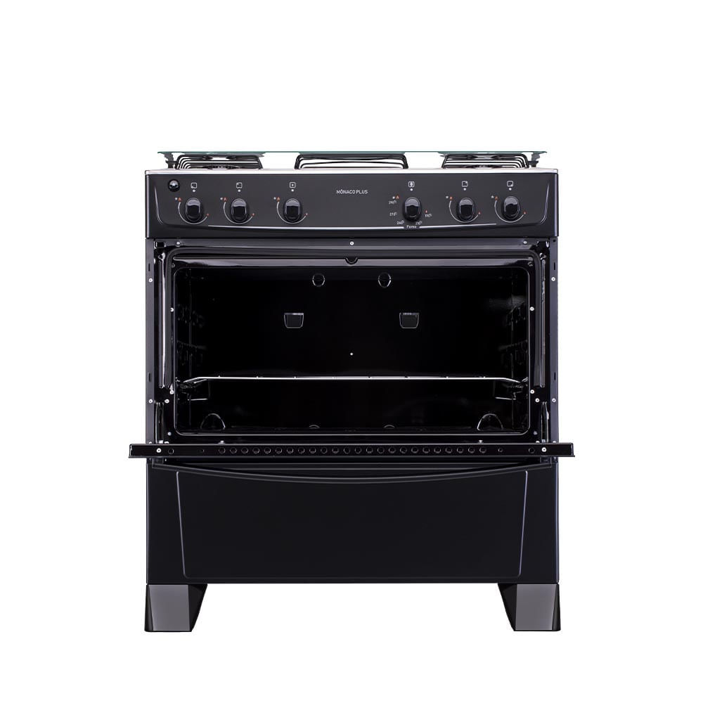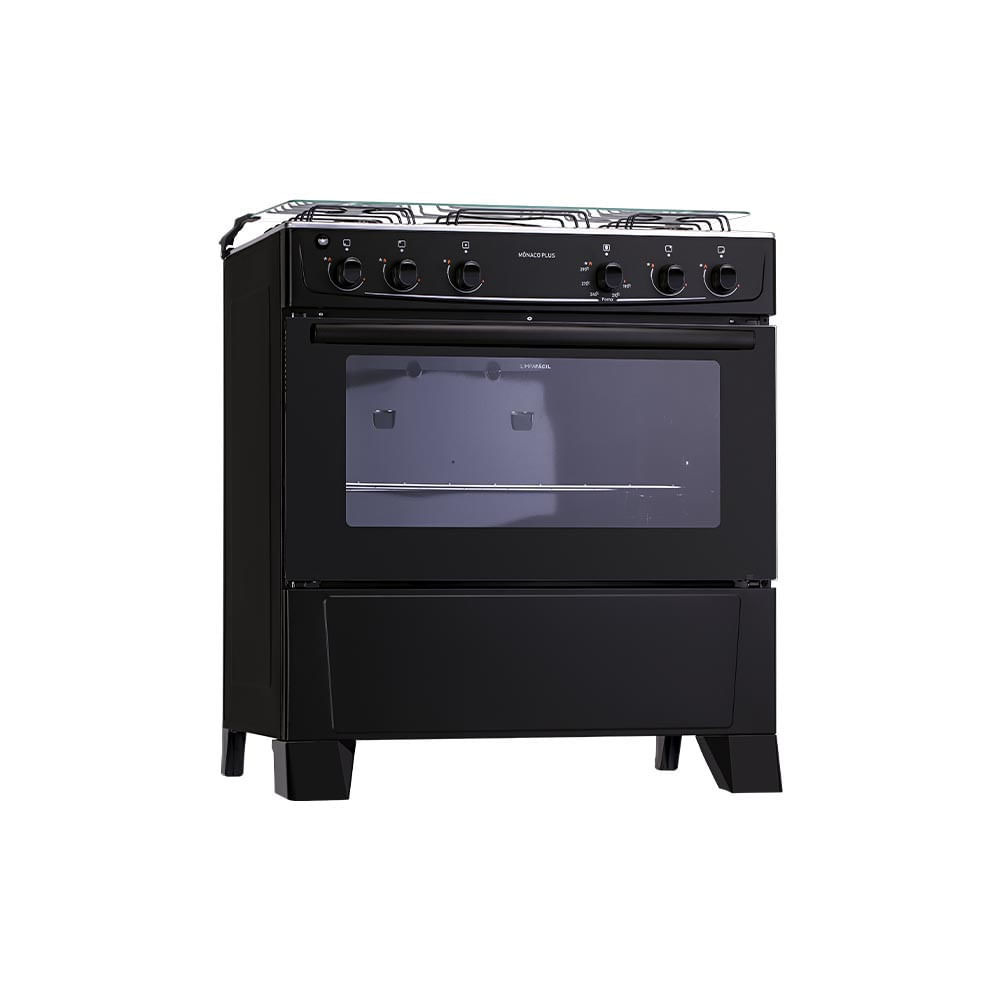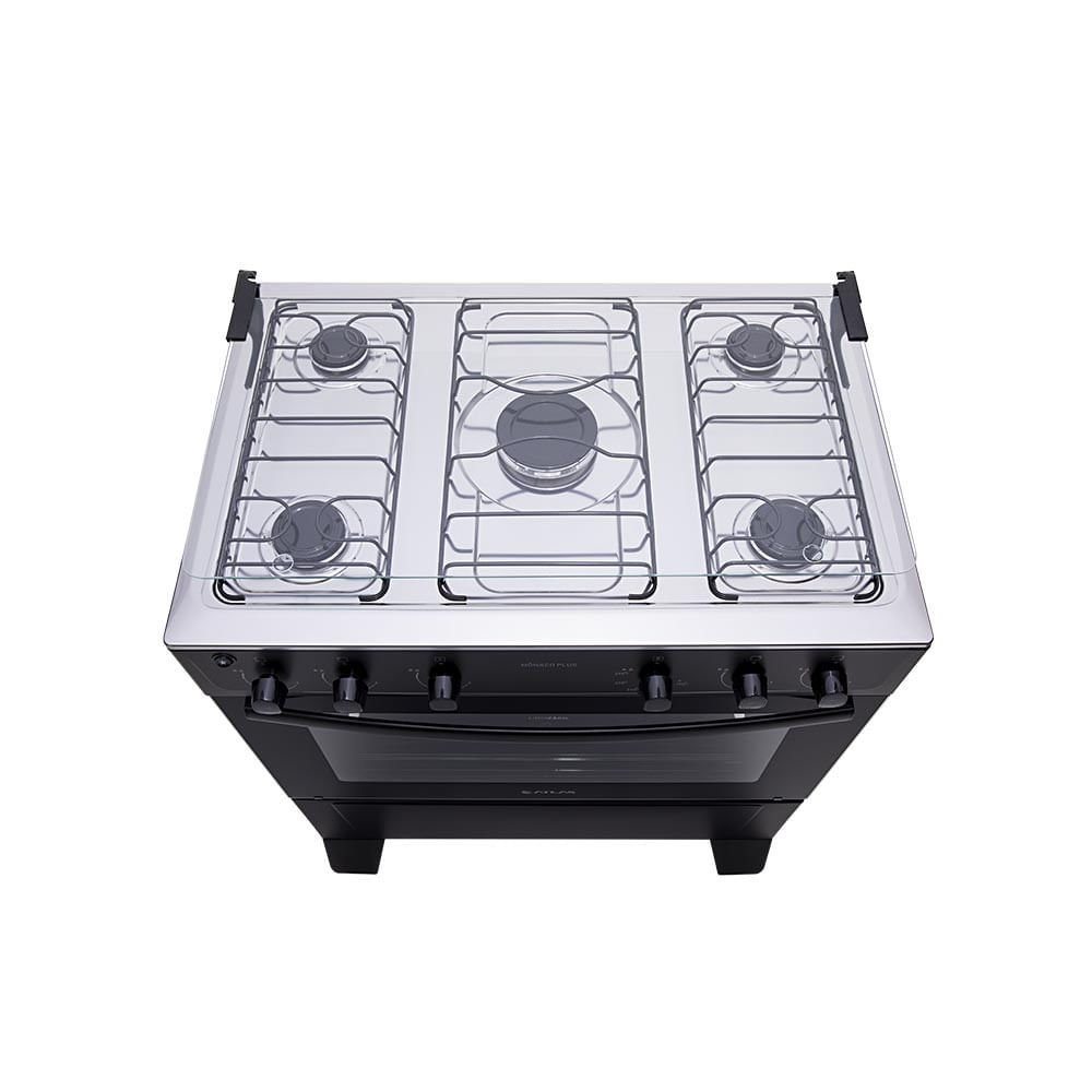 Fogão De Piso Atlas Monaco Plus 5 Bocas Mesa Inox Forno 86,5 Litros Preto Bivolt