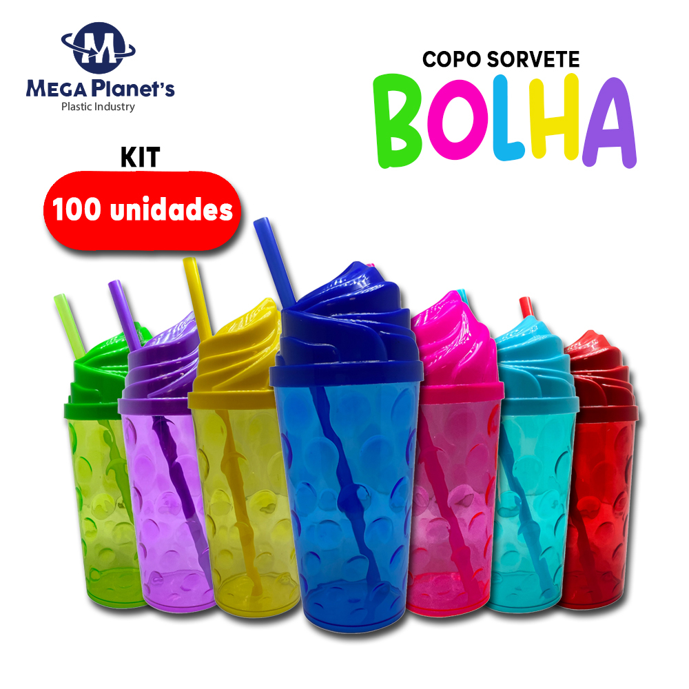 Kit 100 COPO BOLHA 500ml TAMPA SORVETE | Chantilly | Ideal para Drinks e Festas | Aniversários | Casamentos | Chá de Bebê | Decorações