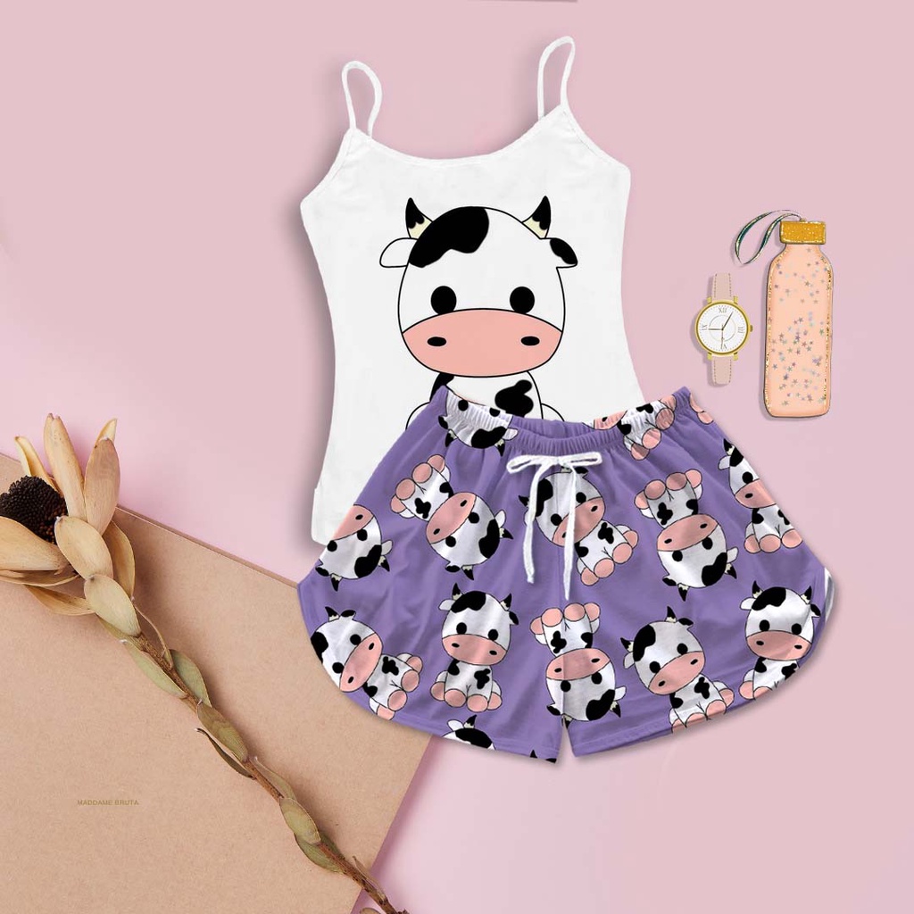 Pijama Feminino Kit Baby Doll Estampa Vaquinha Lilás