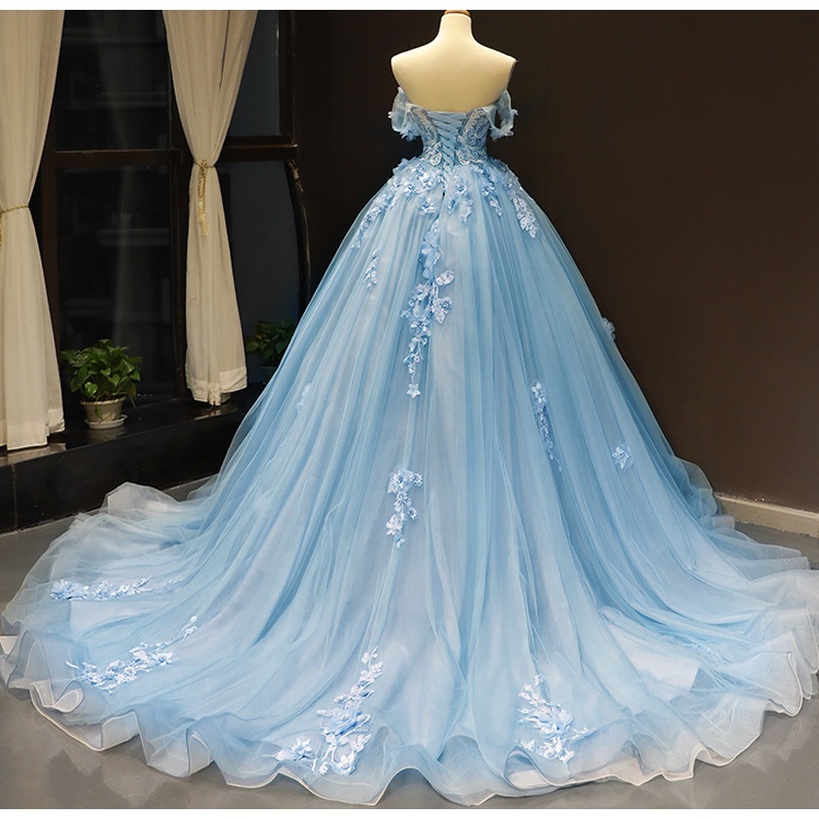 Vestidos De Renda Azul Céu De Luxo Festa Tulle 15 Anos Vintage Bola