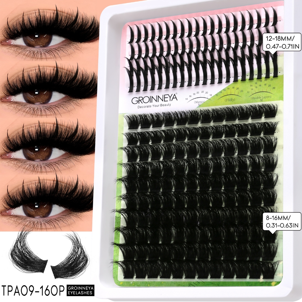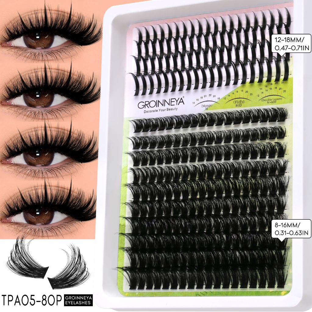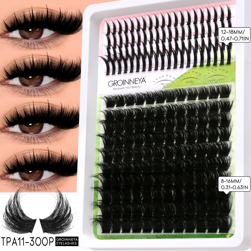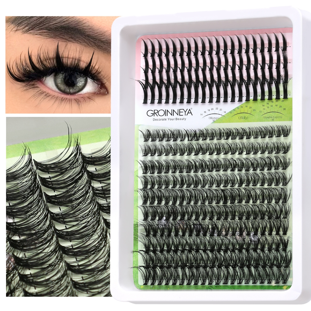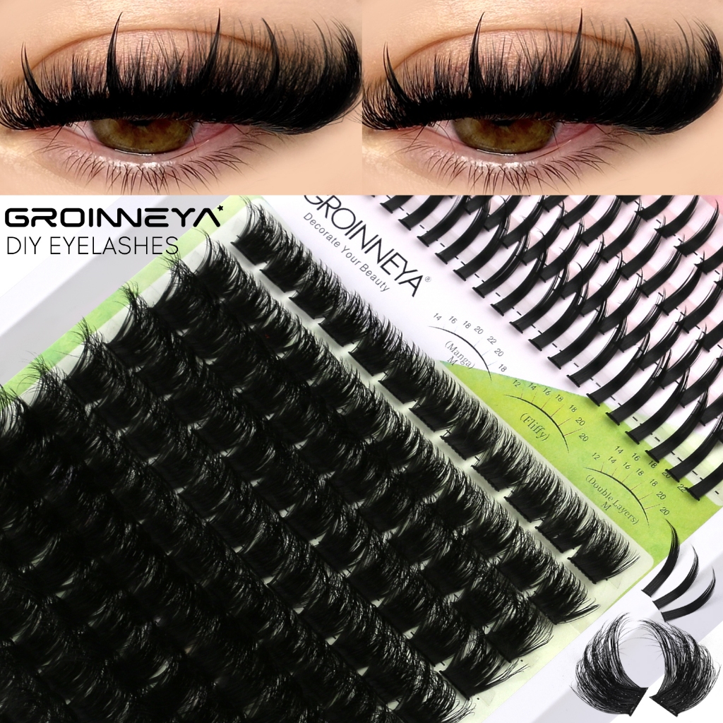 Extensões de Cílios Espigadas GROINNEYA: Tufos Individuais com Pontas para Volume Intenso, Visom e Aplicação DIY
