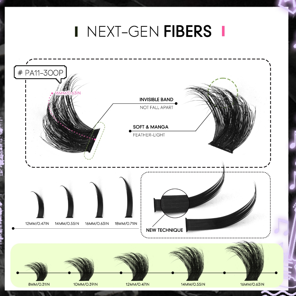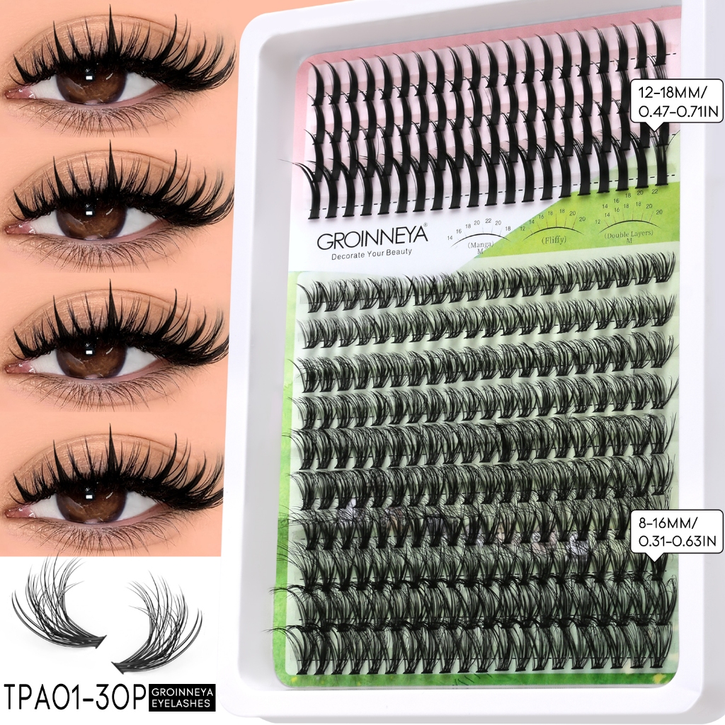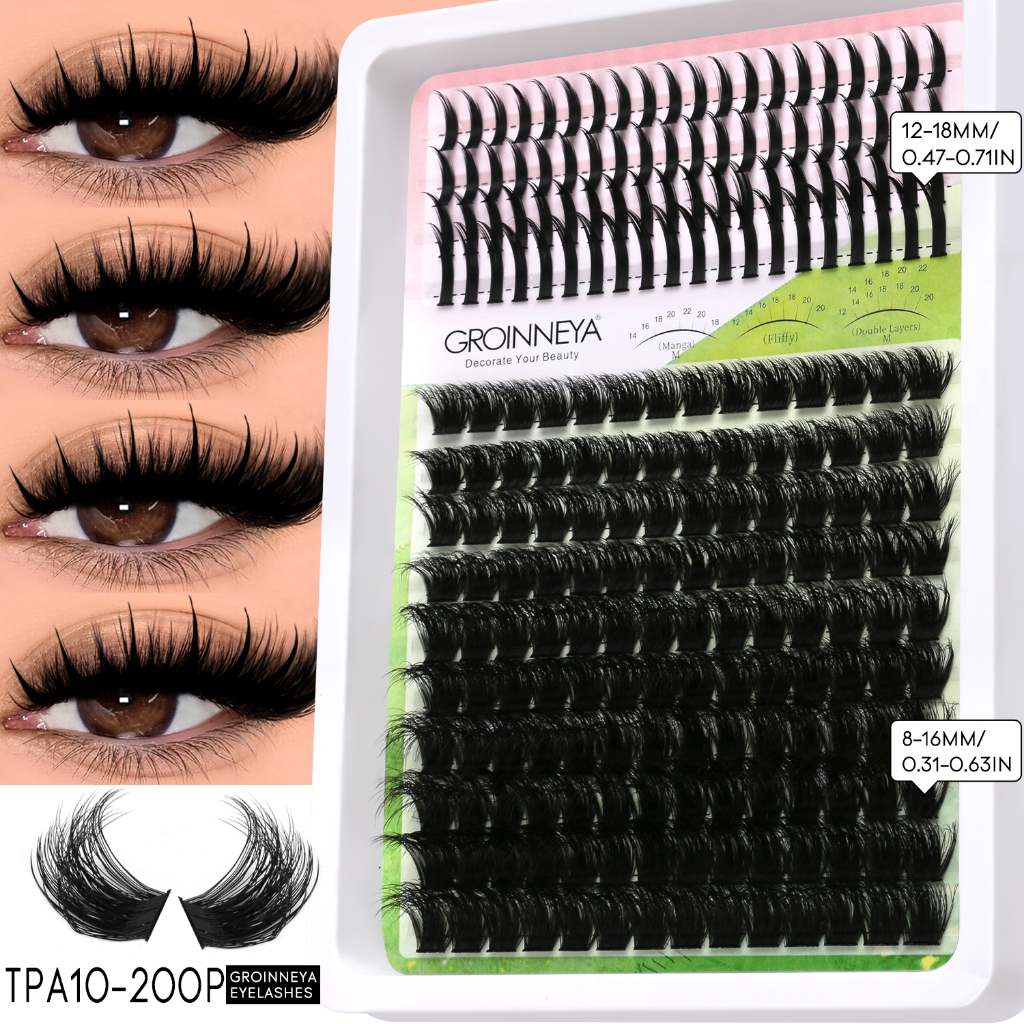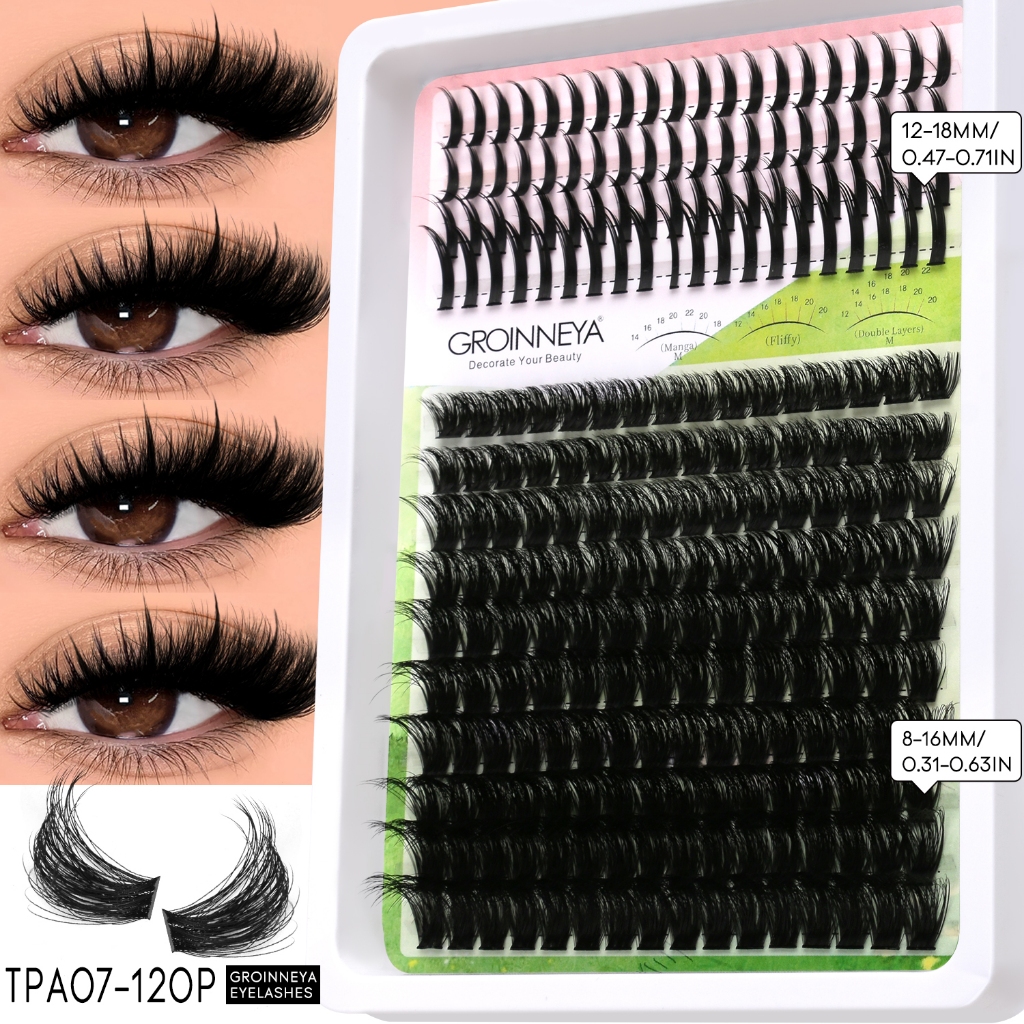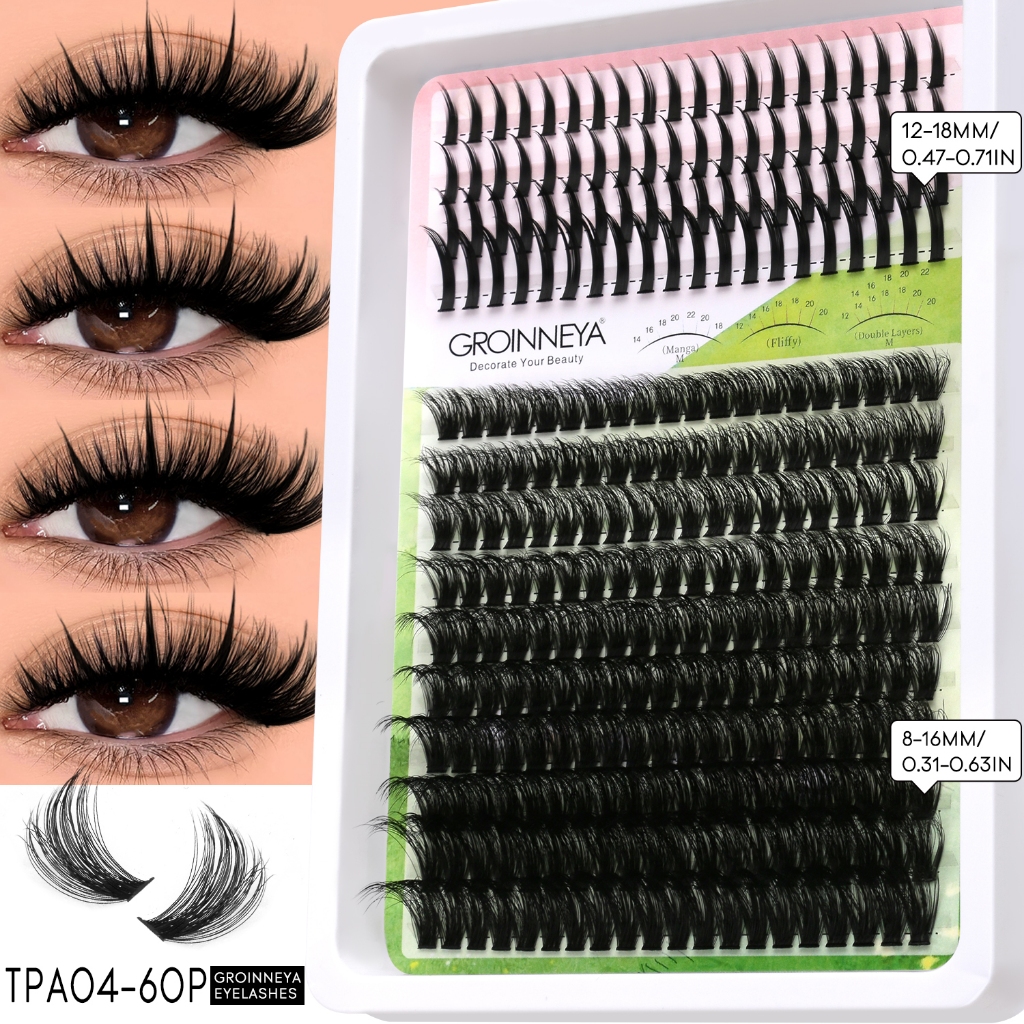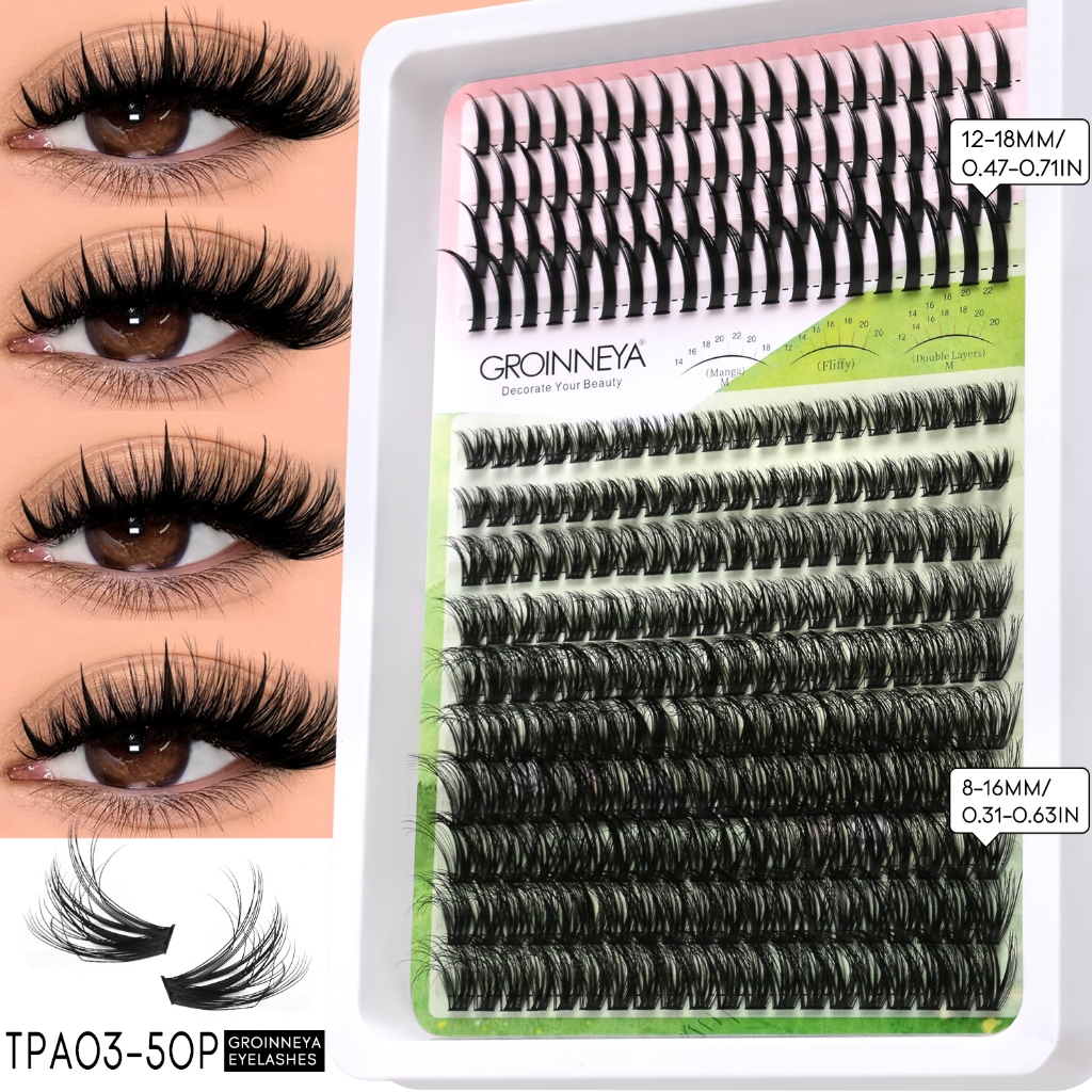 Extensões de Cílios Espigadas GROINNEYA: Tufos Individuais com Pontas para Volume Intenso, Visom e Aplicação DIY