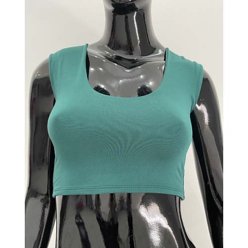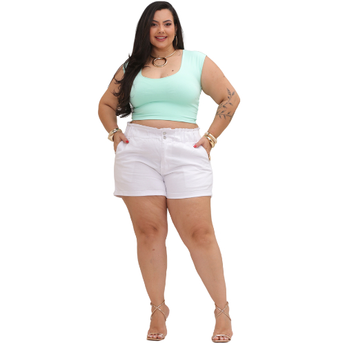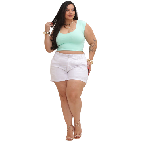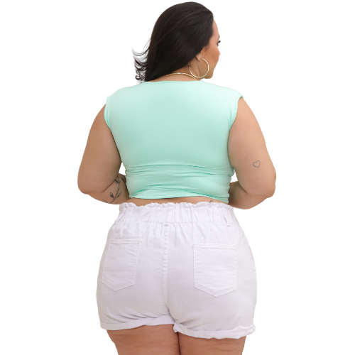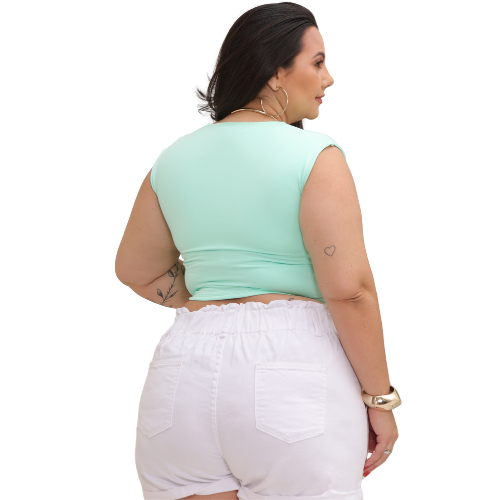 Cropped Feminino Tecido Duplo em Suplex com Decote Plus Size e Slim Esmeralda