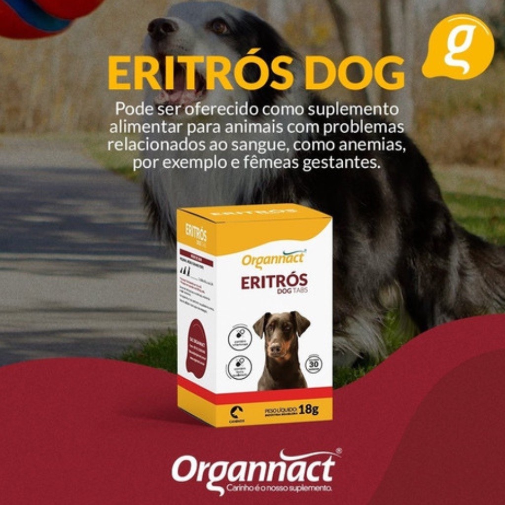 Suplemento Organnact Eritrós Dog Tabs para Cães 30 Tabletes