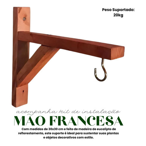 Suporte Plantas Mão Francesa Madeira Macramê Eucalipto 30x30