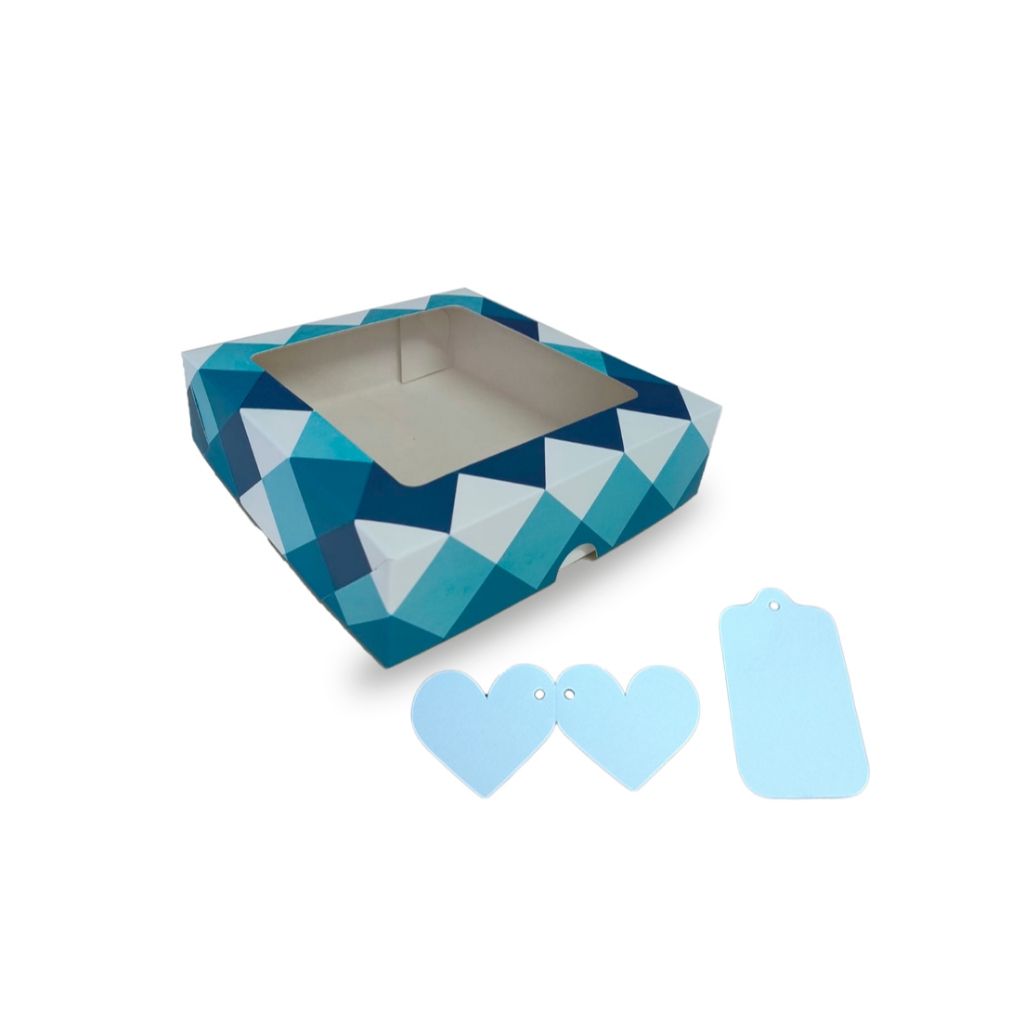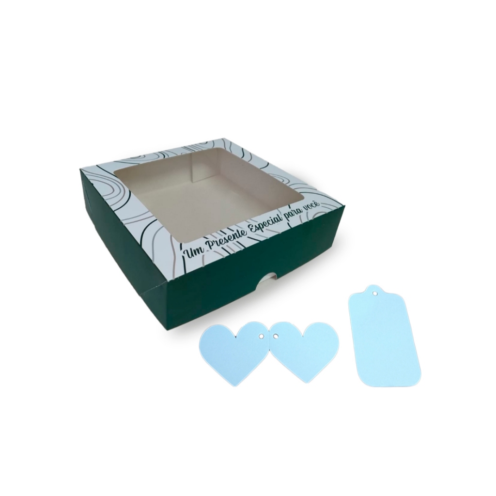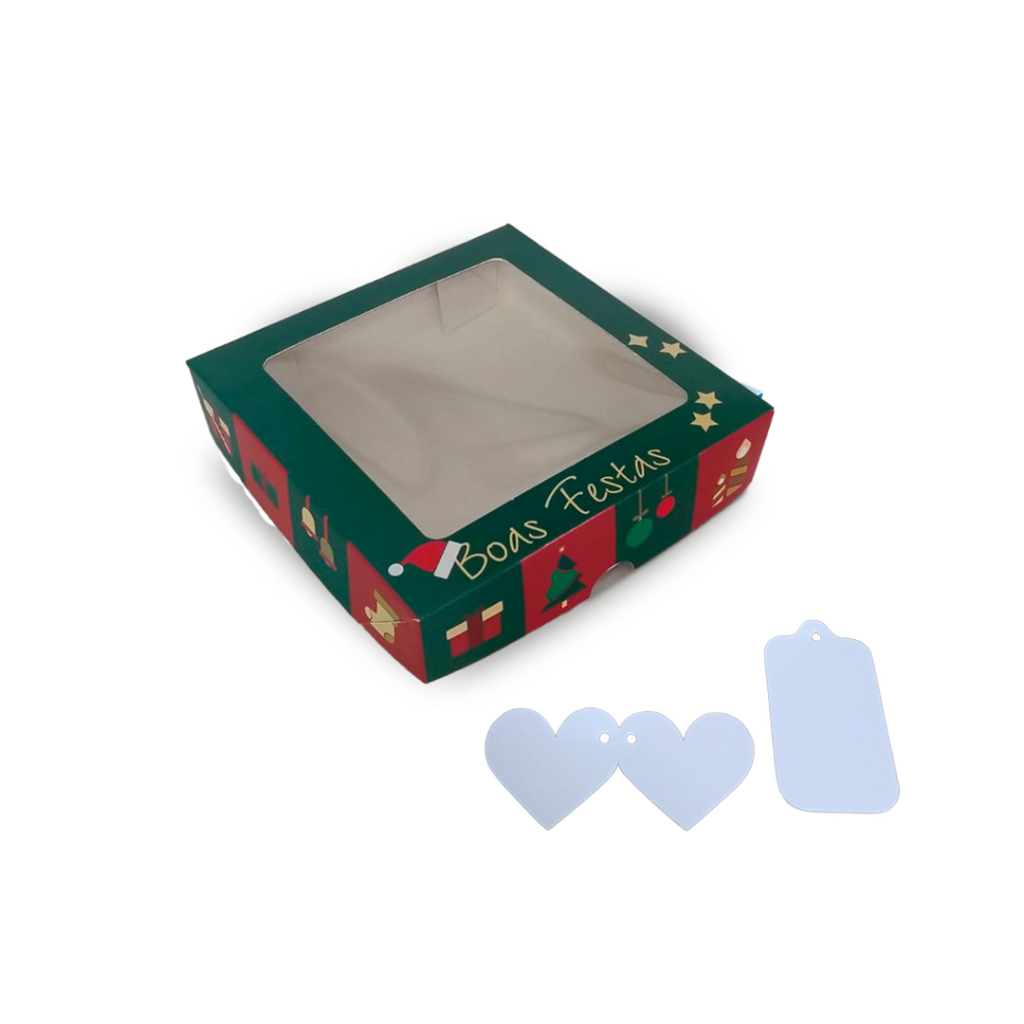 Caixa de Presente, Cosmético ou Artesanatos com Visor + Tags | 15x15x4cm | Estampa Natal, Flores, Coração