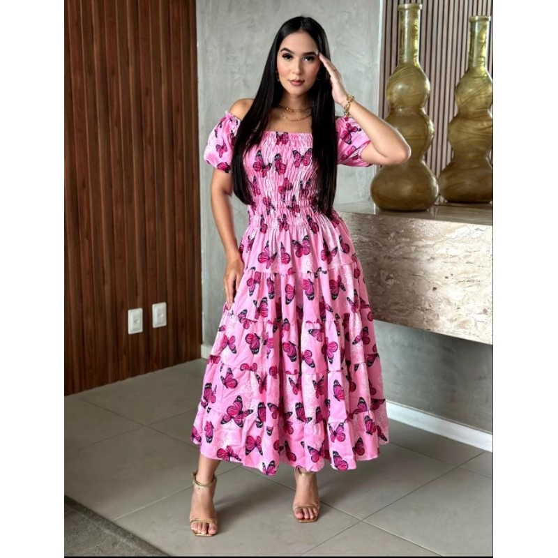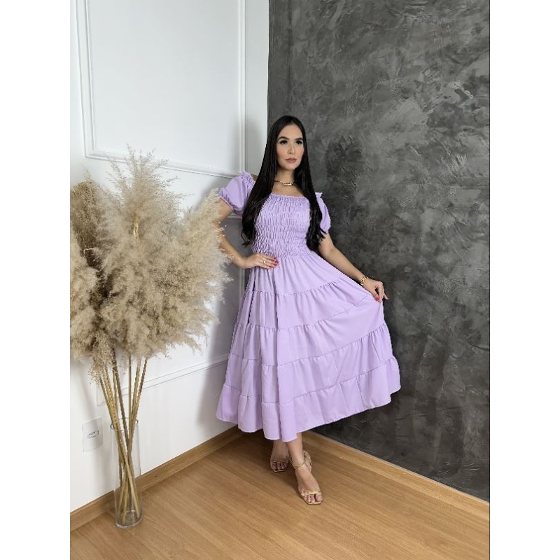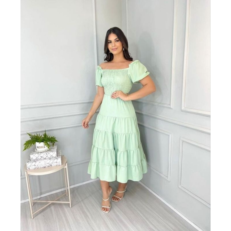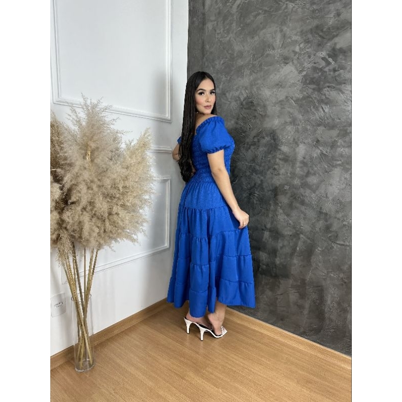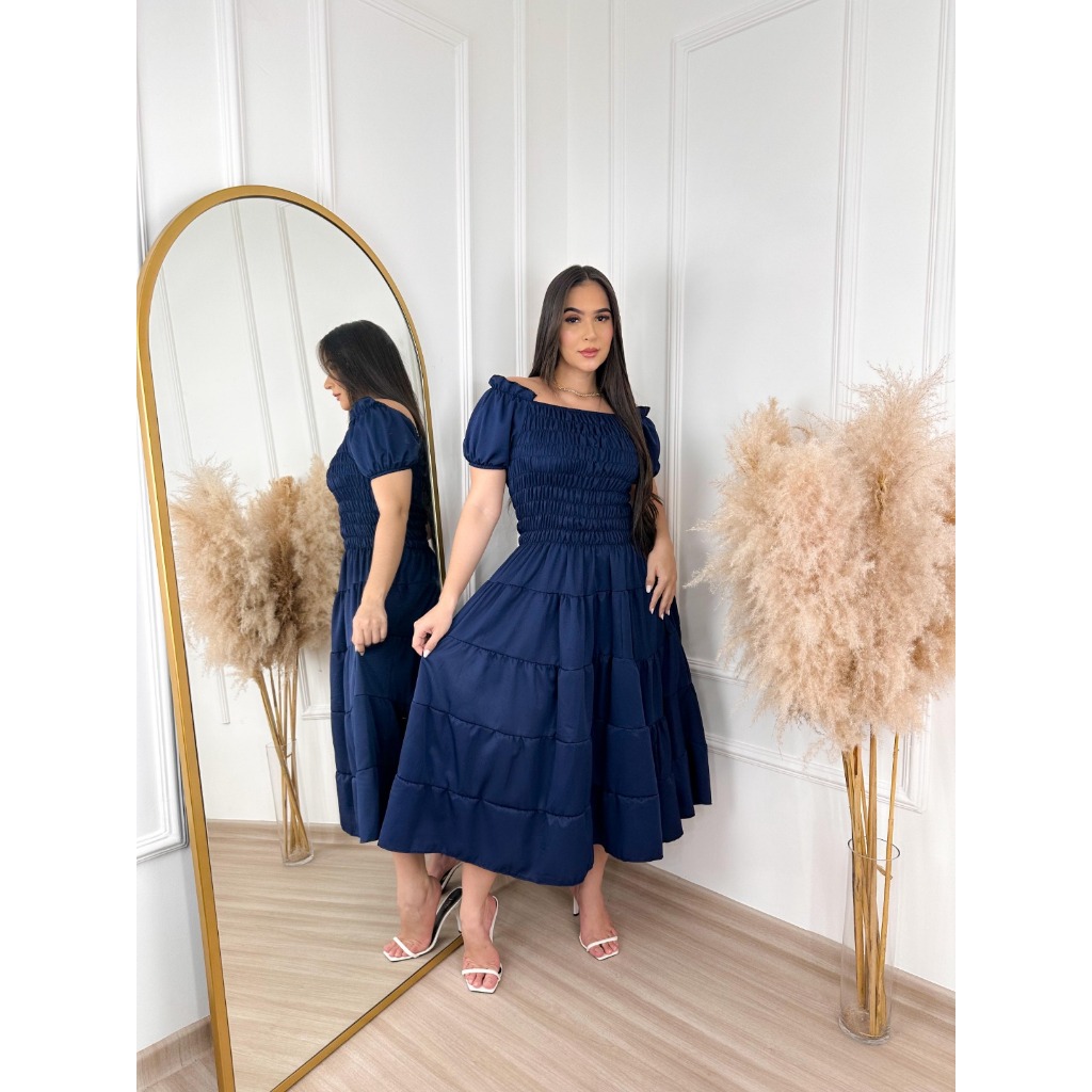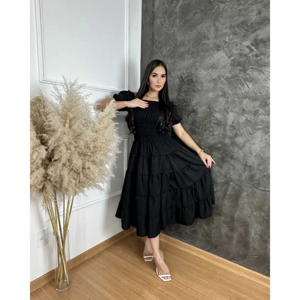 Vestido feminino elegante luxo estiloso casual festa babado moda evangelica quatro marias lastex REF: 130