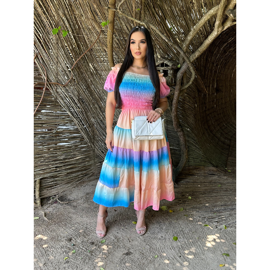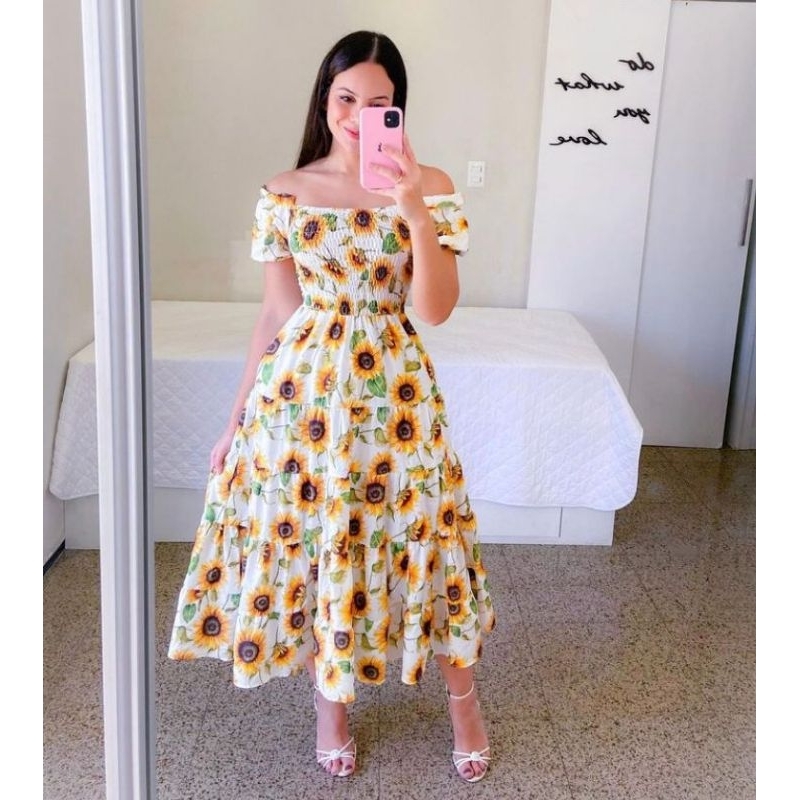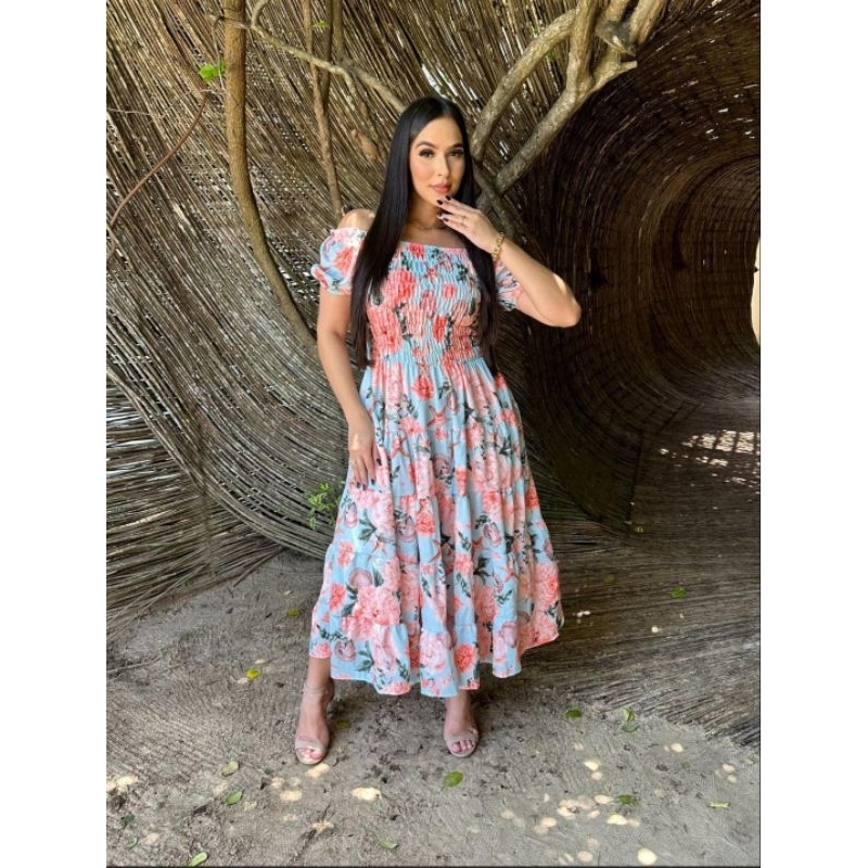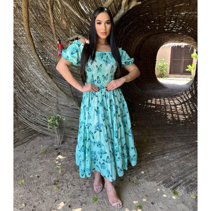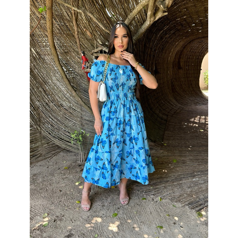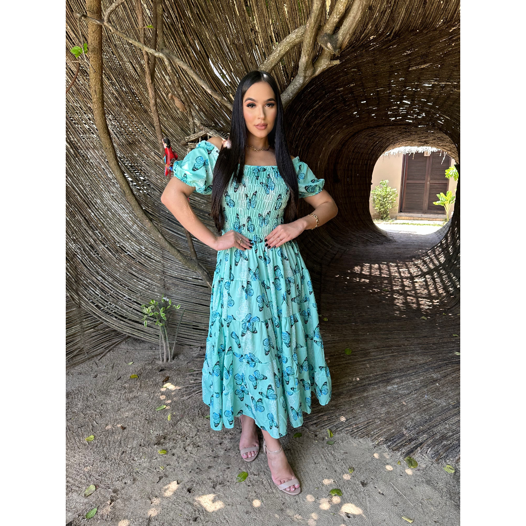 Vestido feminino elegante luxo estiloso casual festa babado moda evangelica quatro marias lastex REF: 130