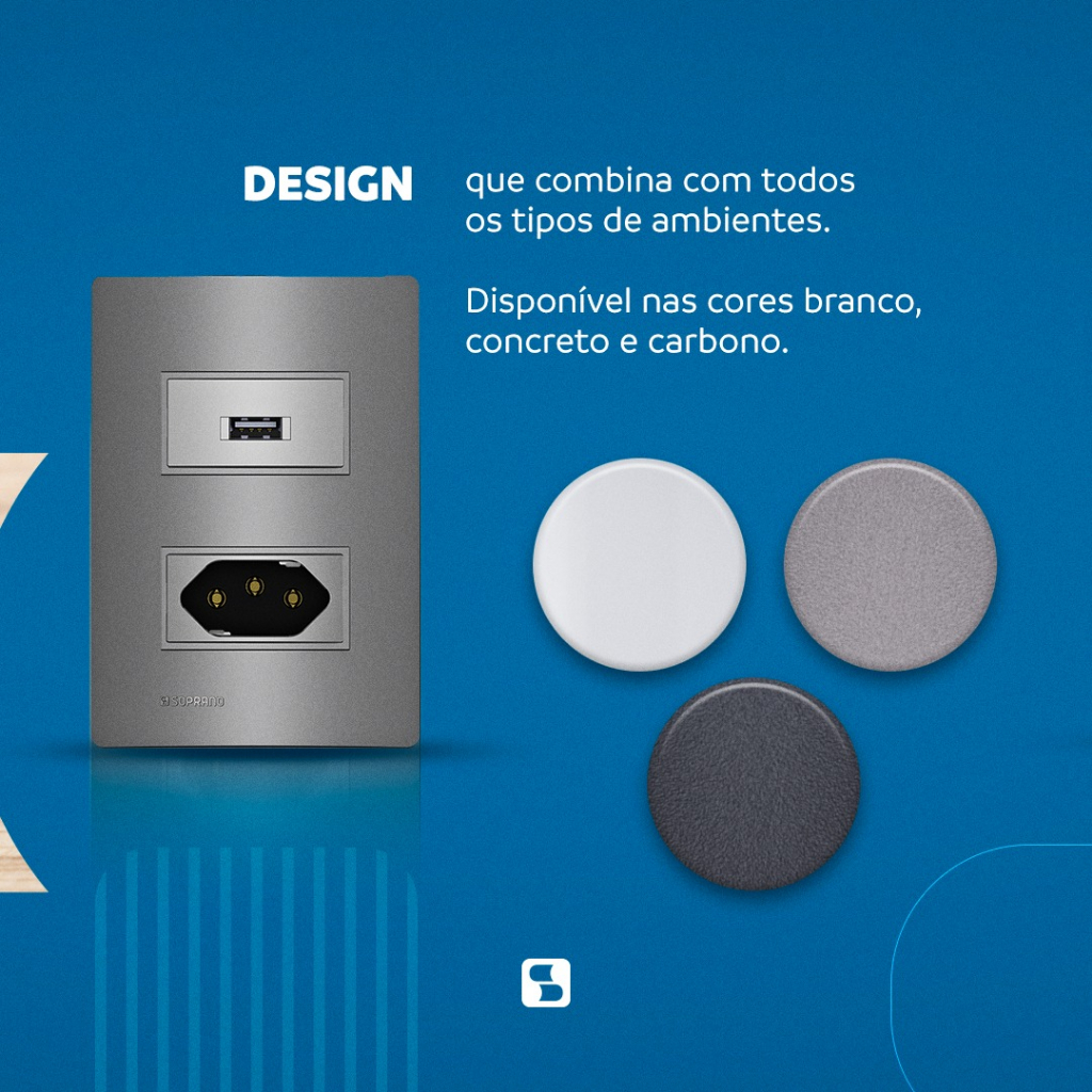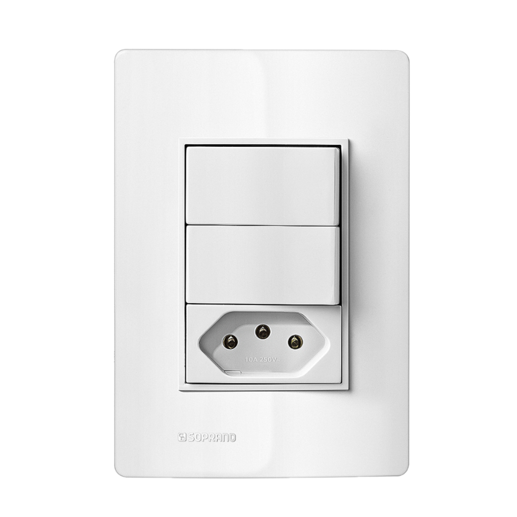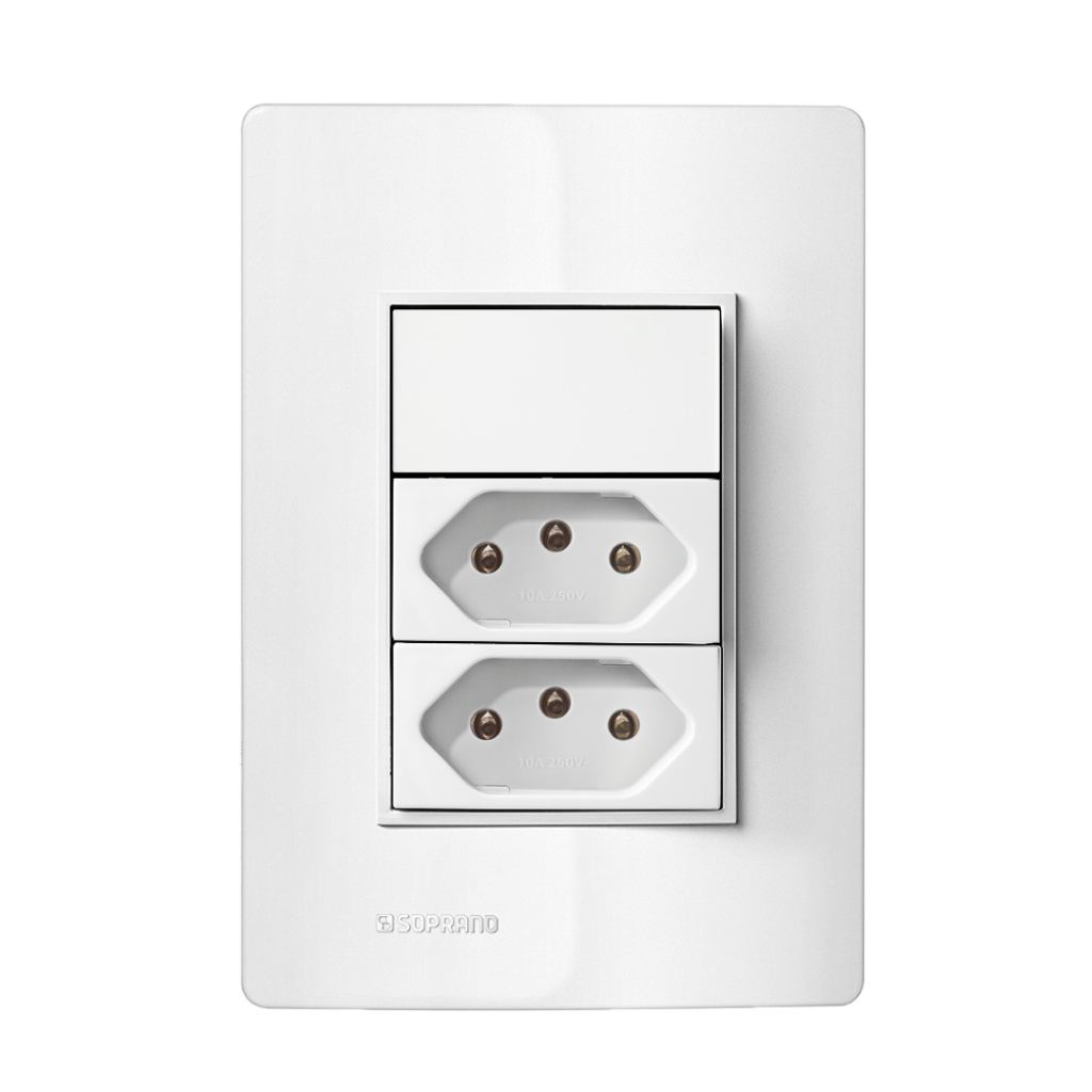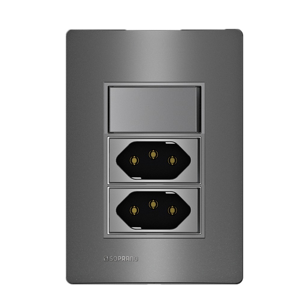 Conjuntos De Tomadas 10A/20A Interruptores Simples/Paralelo LINHA REVITA Cor Concreto/Carbono/Branco | Soprano