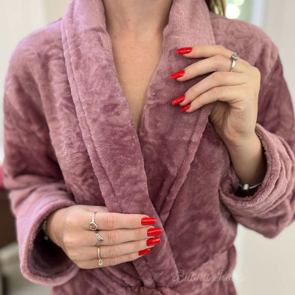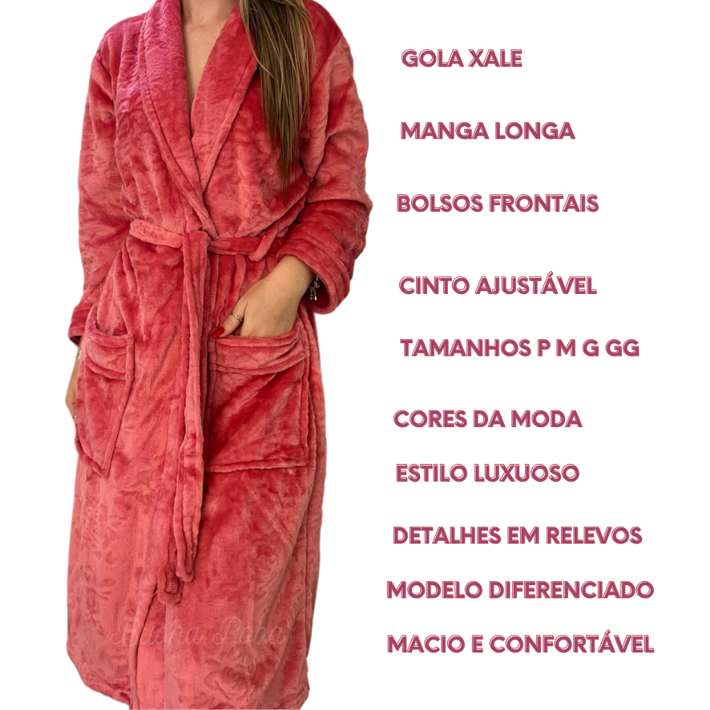 Roupão Plush Flannel Fleece Lady Feminino Manga Longa Luxo Toque Aveludado Com Bolso Premium Appel