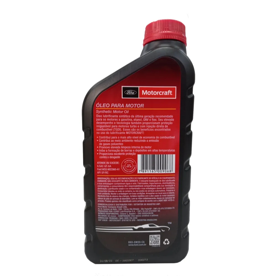 Óleo Lubrificante do Motor Motorcraft SAE 5W20 100% Sintético 1L