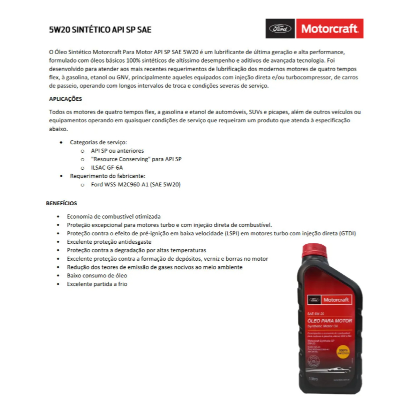 Kit Óleo Filtro Ford Ka 2018/.. 1.0 E 1.5 - 4 Litros 5w20