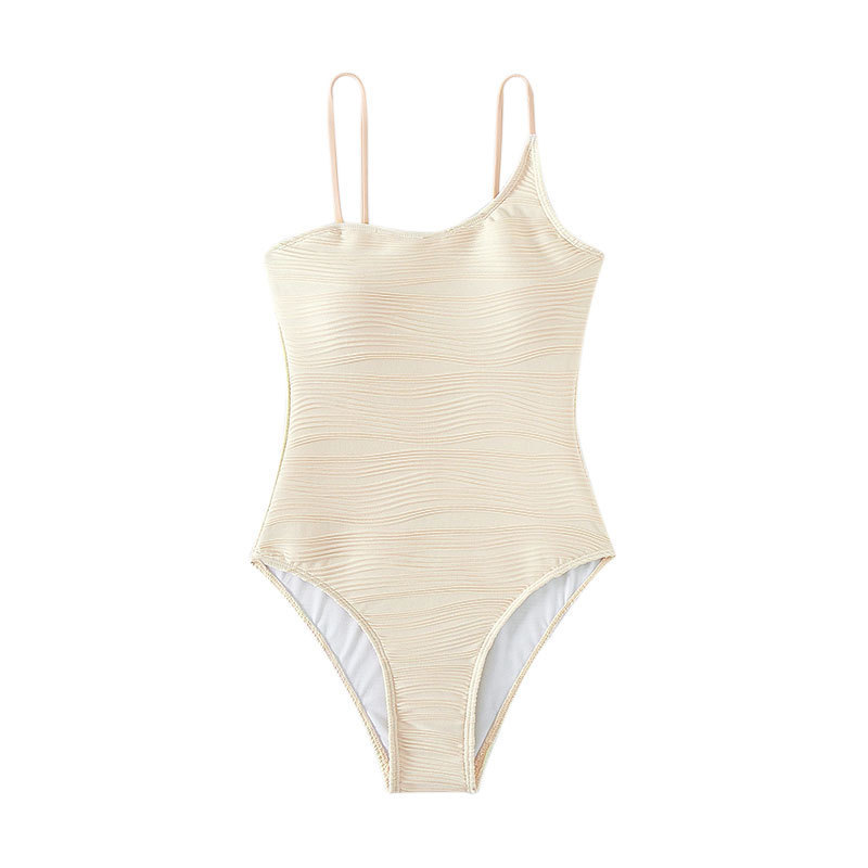 Maiô de uma peça feminino tecido plissado biquíni praia maiô de primavera quente