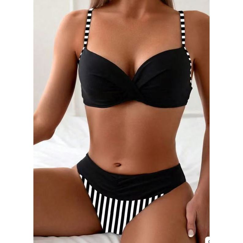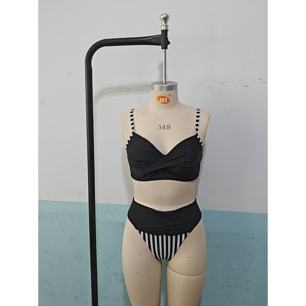 Biquíni feminino cintura alta listrado bolinhas estampado maiô feminino