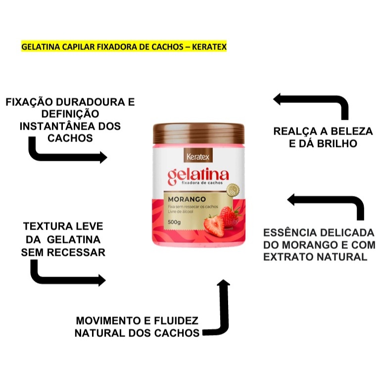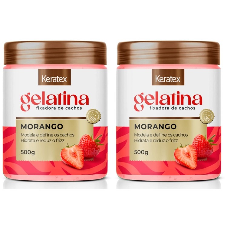 Gelatina Capilar Keratex Morango Fixadora de Cachos 500G 2UN