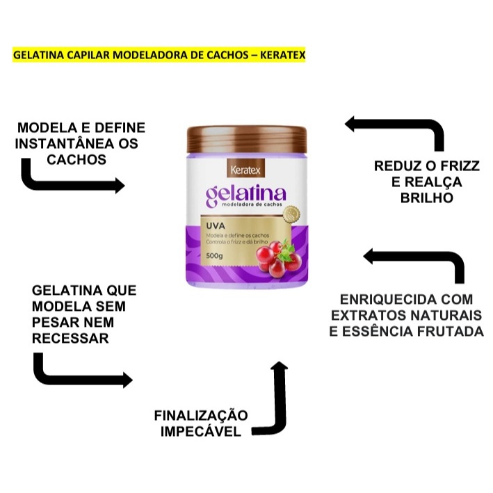 Gelatina Capilar Keratex Uva Modeladora de Cachos 500G 2UN