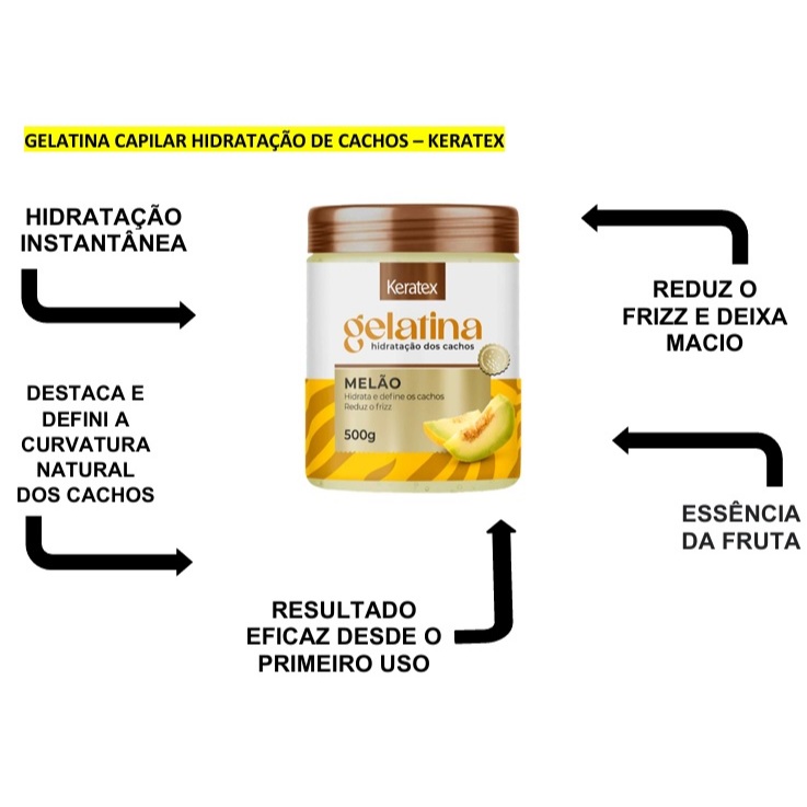 Gelatina Capilar Keratex Melão Hidratadora Cachos 500G 2UN