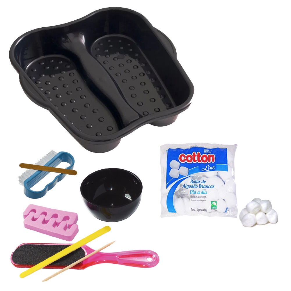 Kit 9 em 1 Bacia (manicure)+ Tigela Faz Unha (manicure) + Algodão Cotton line 40g