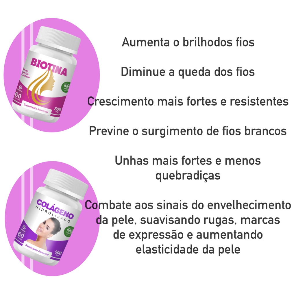 Biotina 60 Cáps + Colágeno 60 Cáps Cabelo Pele Unhas Genature