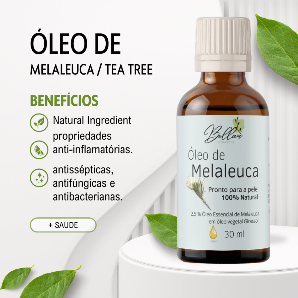 3x Óleo Essencial Melaleuca - Tea Tree pronto para pele 30ml cada.