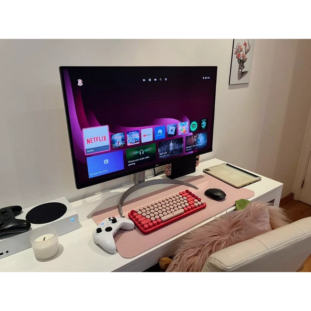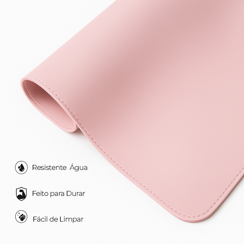 Desk Pad Grande Couro Sintético Rosa Clarinho Feltro Costurado Básico