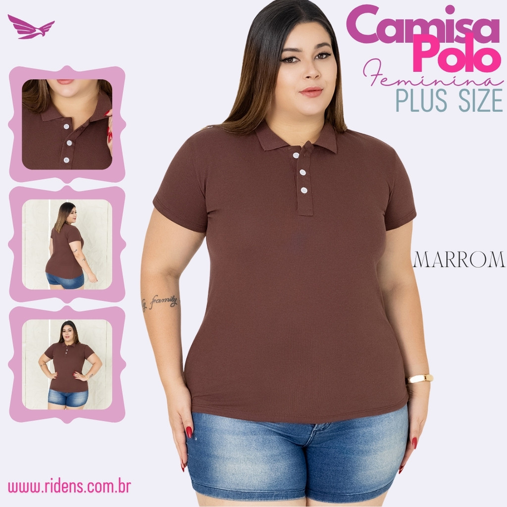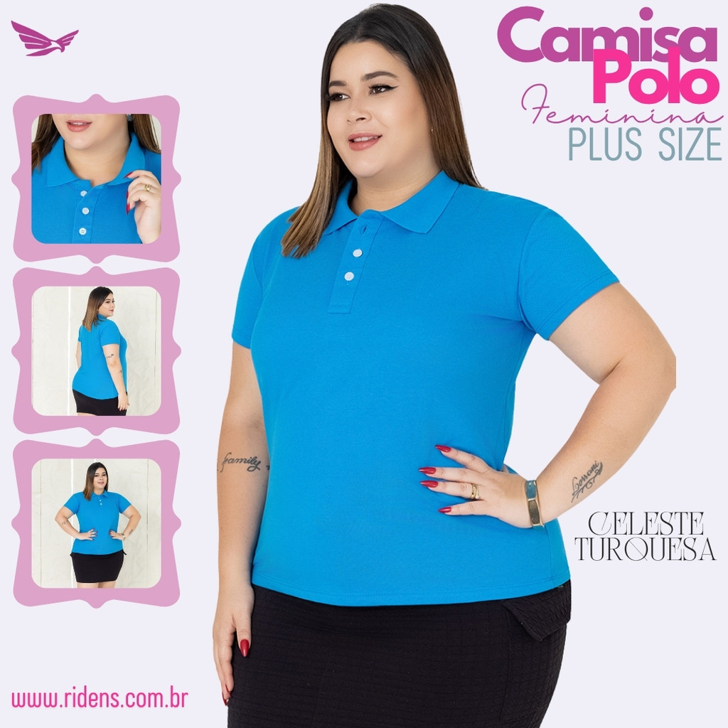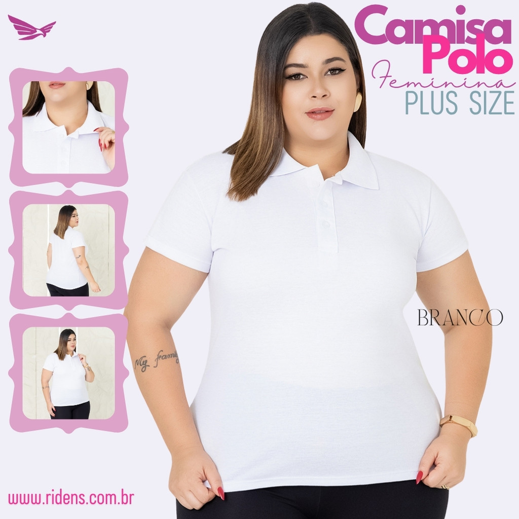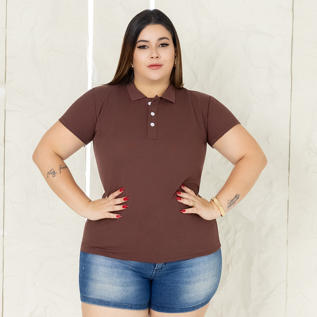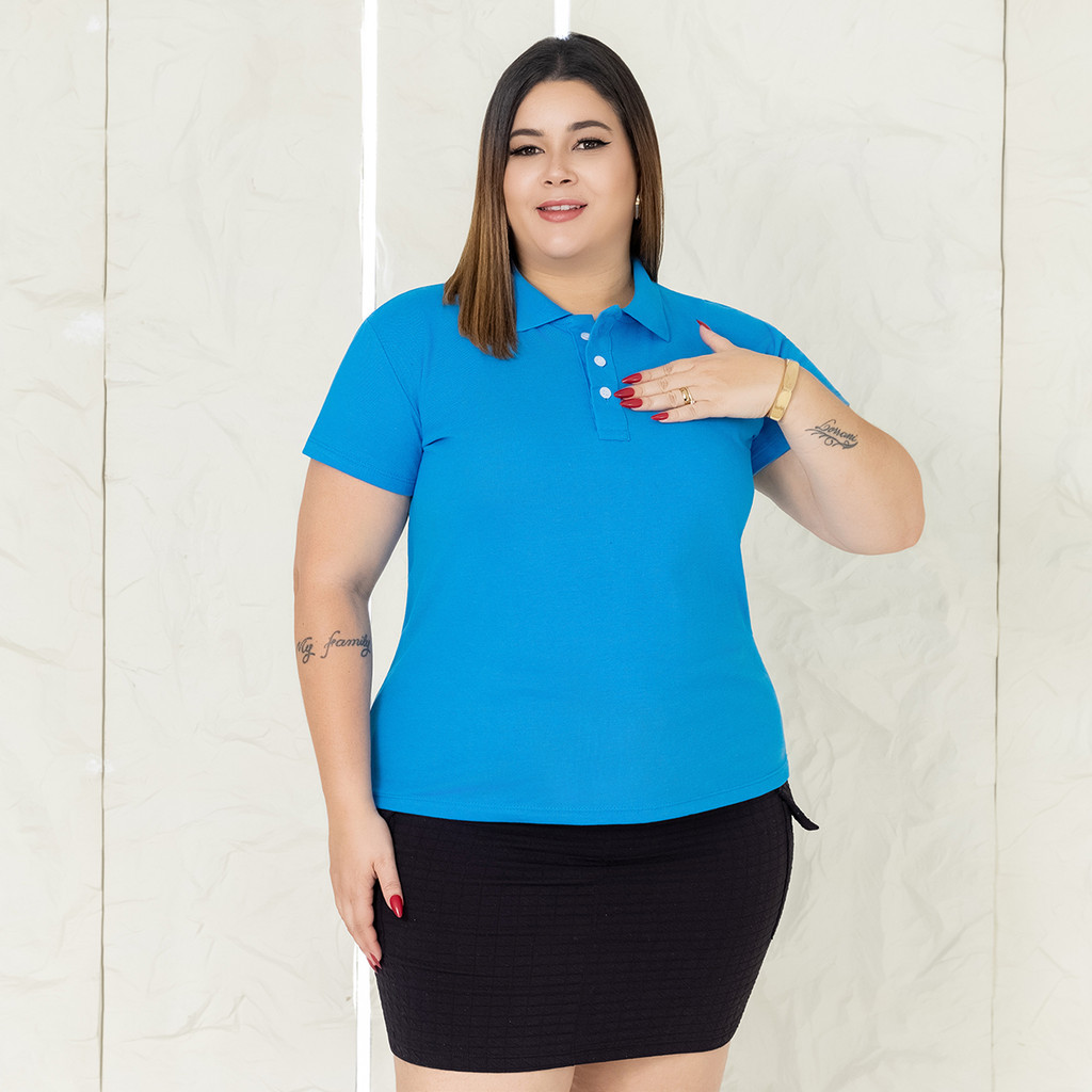 Camisa Plus Size Gola Polo Feminina Ótimo Acabamento Tecido Premium Uniforme
