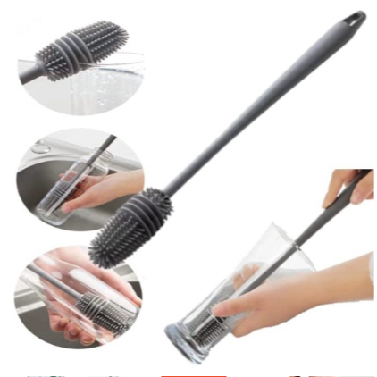 Escova De Silicone Para Lavar Garrafa Mamadeira Copo Taça Ou Banheiro Em Casa Cozinha Limpeza Multiuso Com Cabo