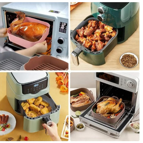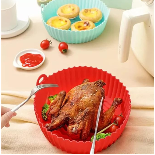 Kit 4 Formas de Silicone para Air Fryer Antiaderente,Reutilizável,Livre de BPA, Alta Temperatura, For e Micro-ondas