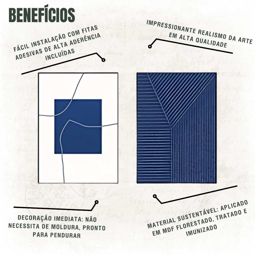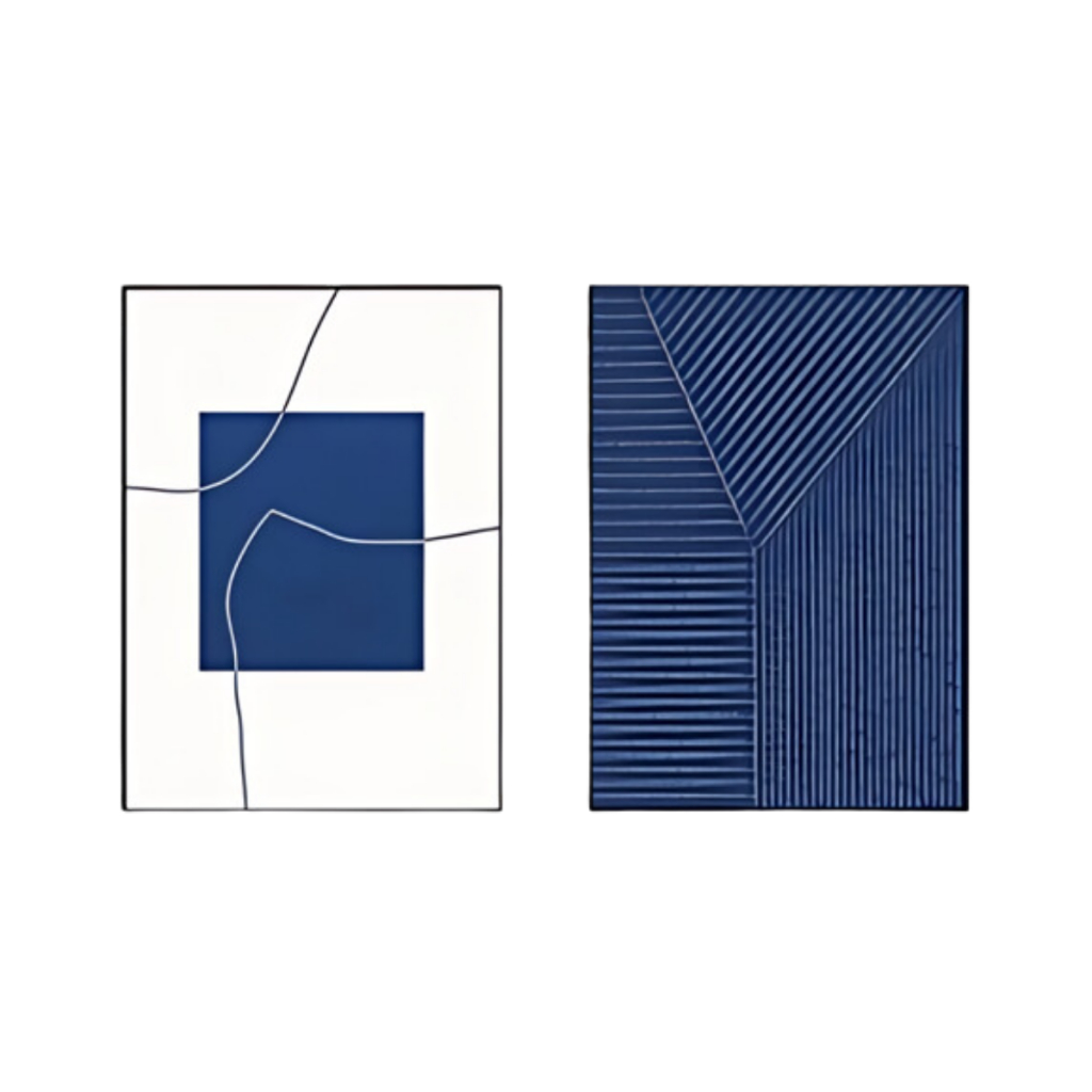 Kit 2 Quadros Decorativos Abstratos Modernos Azul Marinho e Geométrico - Grande 40x60cm cada