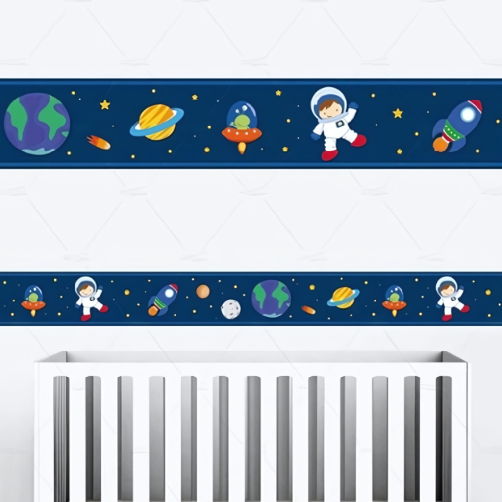 6 Faixas Adesiva Decorativa De Parede Astronauta Baby planetas sistema solar foguete decoração para quarto infantil