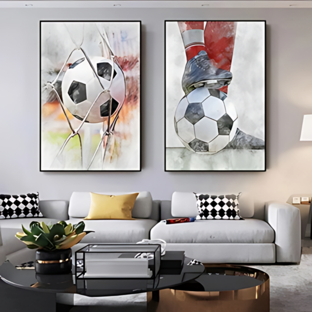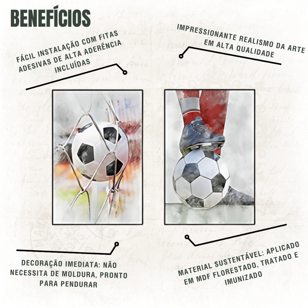 Kit 2 Quadros Decorativos Futebol 40x60 Sem Moldura – Arte Esportiva Bola de Futebol Moderna